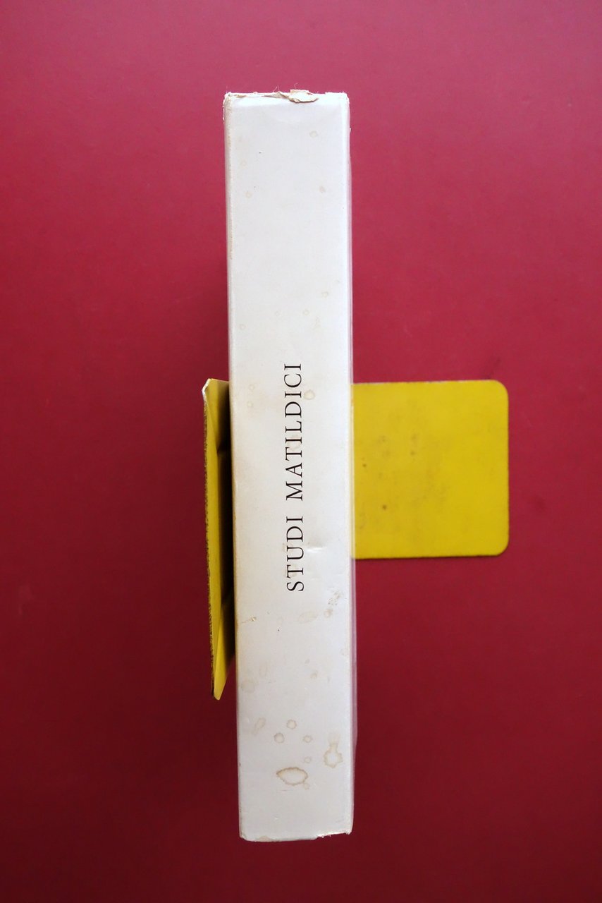 AA. VV., Studi Matildici atti e memorie del II° convegno di studi matildici Modena - Reggio Emilia, 1-2-3 maggio 1970 Aedes Muratoriana, Modena 1971; cm 24x17; pp. 480 con ill. in b/n e a colori; brossura ed. con sovraccoperta ed. Condizioni di conservazione Buone condizioni con leggere tracce d'uso; sovraccoperta ed. con lievi / leggerissimi accenni di ingiallimento, al dorso qualche piccola ombra di gora che non interessa il volume; cuffie e margini superiori con minimi difetti. Interni pressoché ottimi. Edizioni di 750 esemplari a cura di Giordano Bertuzzi. Importante pubblicazione degli atti del II° convegno su Matilde di Canossa, organizzato a Modena e Reggio Emilia nel 1970. Per maggiori informazioni sugli interventi vedi foto indice. SETT17.L26371 N
