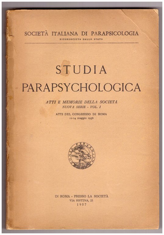 STUDIA PARAPSYCHOLOGICA. Atti e memorie della società, vol. 1.