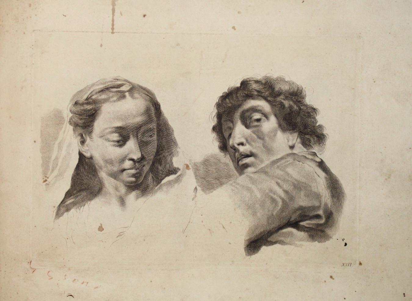>Incisione in rame (cm. 22,5x31 e ampi margini). Tratta da Piazzetta, G.B. Studi di Pittura già dissegnati da Giambattista Piazzetta, ed ora con l'intagli di Marco Pitteri. Venezia, 1760. Prima edizione postuma voluta da Giovanni Battista Albrizzi. L'attività del Piazzetta negli ultimi anni di vita fu dedicata alla produzione di disegni, molti dei quali usciti dai torchi dell'amico G.B. Albrizzi. L'editore veneziano aveva commissionato all'artista una serie di disegni per un edizione ad uso di chi quest'arte ''o per e per diletto desidera di apprendere i fondamenti''. Schlosser p. 561. Cicognara 345. Cicogna 4657.