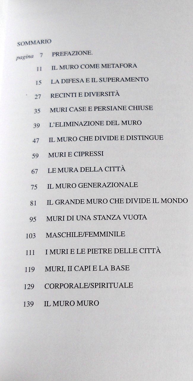 Soggetti: Murature Teorica Mura Elementi divisori Divisioni Filosofia Abitare Alberi Alberobello Amici Antico Architetti Architettura Arco di trionfo Cartongesso Casa Città Comportamento Comunità Condizione Conservare Costruire Costruzioni Cupola Disegno Donne Ebrei Emoscambio Facciata Famiglia Figli Film Firenze Fossoli Fotografica Gerusalemme Giardini Giovani Grandi Muri Spazio architettonico Separazione Divisione Integrazione Intolleranza Intonaco Israele Ludovico Quaroni Morte Moschea Omar Muro di Berlino Nomadelfia Paolo Conte Arlotto Progetto Ragazzi Recinto Saul Steinberg Scritte Strada Studenti Sud Tecnica Terra Toscana Villa Vissuto Vivere Cipressi Recinti Barriere architettoniche Limiti Giardino recintato Confini Chiusura Metafora Facciate Chiese Santa Maria in Fiore Palazzo Vecchio Michelangelo Arte Piazza Signoria Duomo Santo Spirito Pareti Tende Arazzi Separatori Arredamento Arredi Camere Case Religioni Fondamentalismo Fede Linea Maginot Palestina Antisemitismo Medioevo Ingresso Nemici Fortezze Metafore Giordania Cina Grande Muraglia Romani Ponti Archi Laterizio Fascismo Libri rari illustrati fuori catalogo Saggi Biografie Memorie Diario Collezionismo Generazioni Articoli Masonry Theory Walls Dividing Elements Divisions Philosophy Living Trees Friends Ancient Architects Architecture Triumphal Arch Plasterboard House City Behavior Community Condition Preserve Building Constructions Dome Drawing Women Jews Blood Exchange Facade Family Children Florence Photographic Jerusalem Gardens Young People Architectural Space Separation Division Integration Intolerance Plaster Israel Death Mosque Berlin Project Kids Fence Writings Street Students South Technique Earth Tuscany Experienced Cypresses Fences Barriers Limits Enclosed Garden Borders Closure Metaphor Facades Churches Art Curtains Tapestries Separators Furnishings Rooms Houses Religions Fundamentalism Faith Line Palestine Anti-Semitism Middle Ages Entrance Enemies Fortresses Metaphors Jordan China Great Romans Bridges Arches Brick Fascism Rare illustrated books out of print Essays Biographies Memories Diary Collecting Generations Articles Difesa