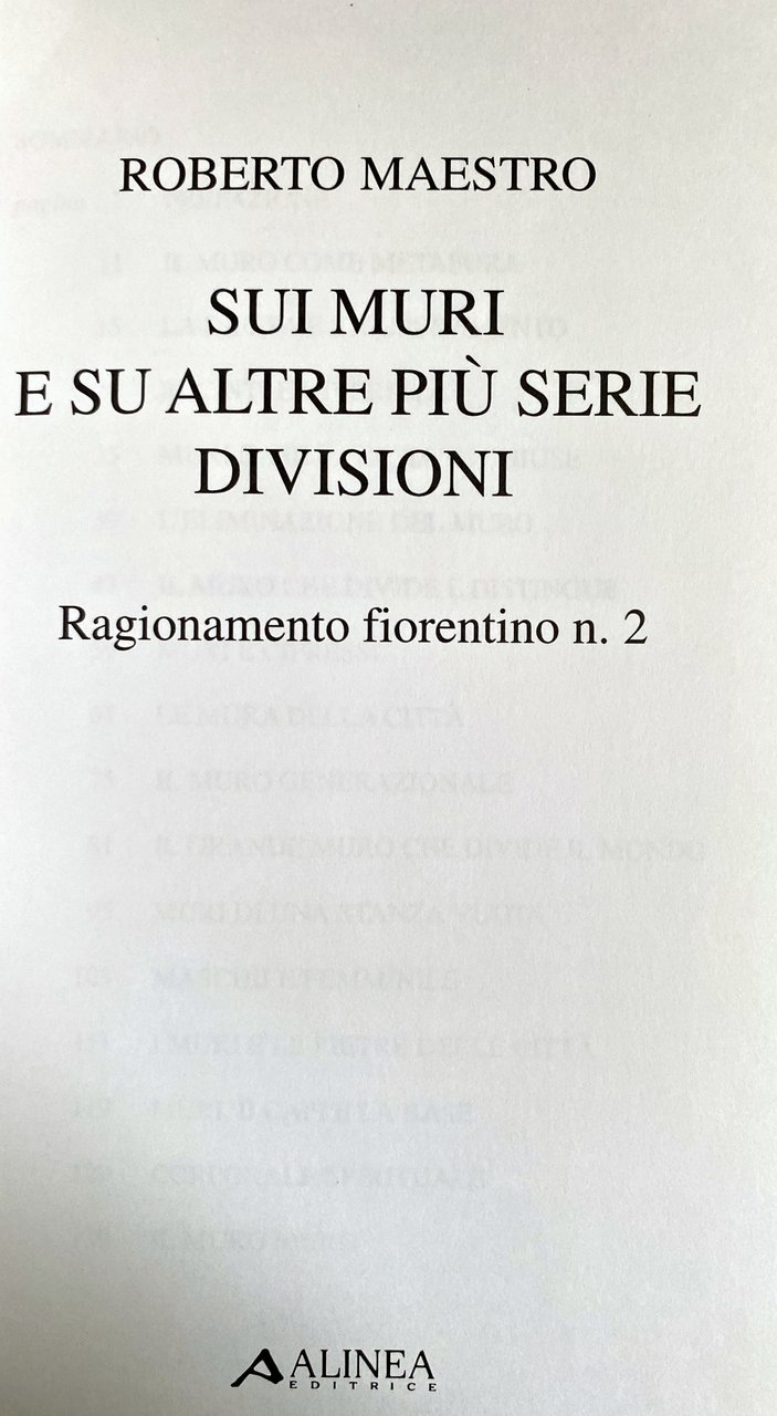 SUI MURI E SU ALTRE PIÙ SERIE DIVISIONI. RAGIONAMENTO FIORENTINO N. 2 | Libros antiguos y modernos | Roberto Maestro