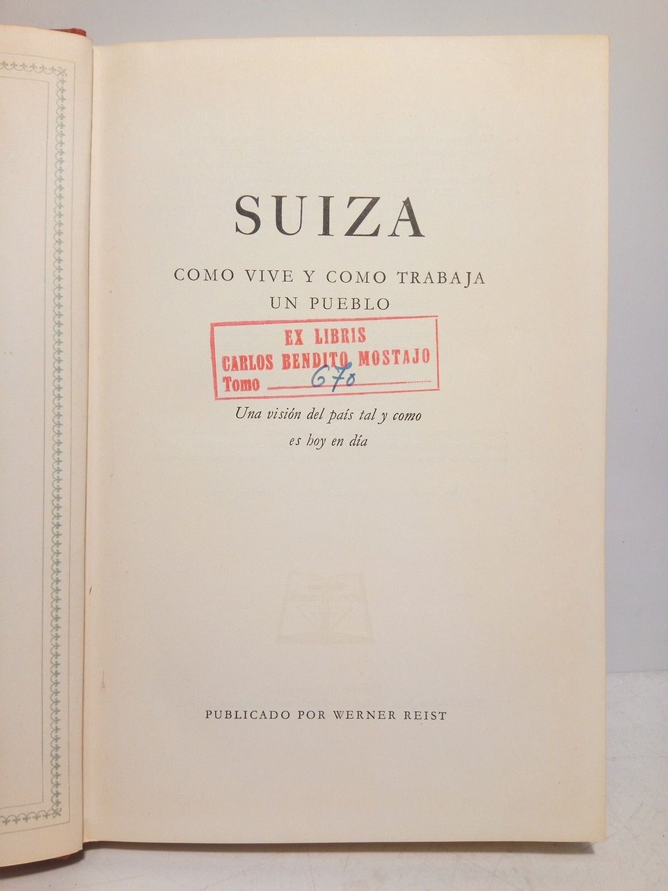 Berna: Imp. por Fritz Pochon-Jent, Verlag, cop. 1952.- 205 p., [1 h.]: Profusamente ilustrado con láminas en color e ilustraciones entre el texto; 4º menor (21 x 14 cm); Tela Ed.- Interesantísima visión histórico-social de la formación del estado suizo, pequeño ejemplo de lo que podría y debería ser una Europa verdaderamente unida.* Tiene en la portada estgampado un ex-libris tampón. Por lo demás en excelente estado. GEOGRAFÍA, GUÍAS Y ATLAS DEL EXTRANJERO