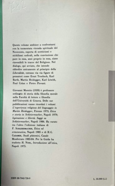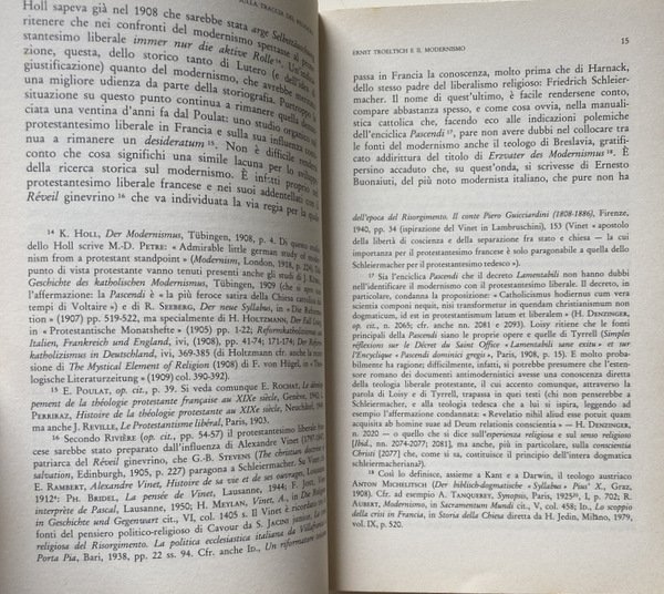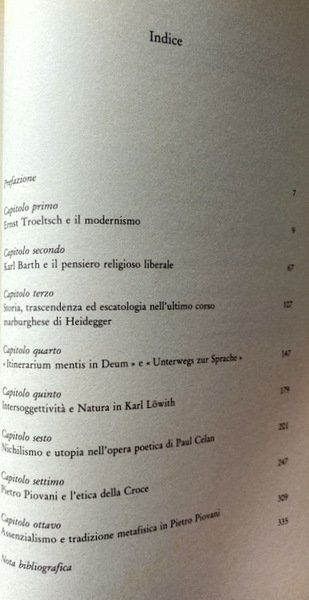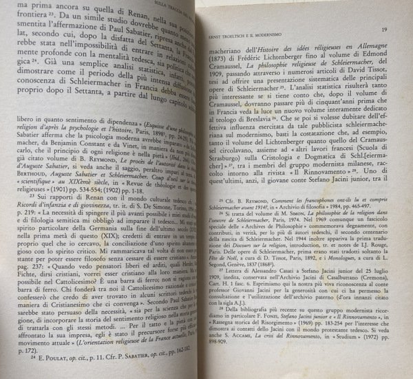 Soggetti: Religione, Religioni, Fedi, Spiritualità, Filosofia, Etica, Scetticismo, Nichilismo, Religioso, Teologia, Fenomenologia, Fenomeni religiosi, Raccolte di saggi, Antologie, Critica, Interpretazione, Giuseppe Cantillo, Eugenio Mazzarella, Studi critici, Scuola neokantiana, Gnoseologia, Riferimento, Bibliografia, Liberalismo, Pensiero religioso liberale, Modernismo, Storia, Escatologia, Chiesa, Trascendenza, Lezioni, Marburgo, Germania, Corso marburghese, Mistica, Intersoggettività, Natura, Utopia, Paul Celan, Poesia, Itinerarium mentis in Deum, Dio, Gesù Cristo, Unterwegs zur Sprache, Opera poetica, Letteratura, Poesie, Croce, Crocifisso, Simboli, Simbolismo, Assenzialismo, Tradizione, Metafisica, Pietro Piovani, Libri rari Vintage fuori catalogo, Theologie, Collezionismo, Studi filosofici, Alfred Loisy, Movimento cattolico, L'Évangile et l'église, Adolf Harnack, Protestantesimo, Syllabus, Riforma protestante, E. Poulat, Der Modernismus, K. Holl, Francia, Friedrich Schleiermacher, Encicliche, Pascendi, Controversie religiose, Libertà, Scolastica, Giovanni Gentile, Storiografia, Benedetto Croce, Cattolicesimo, Tedeschi, Germania, Inghilterra, Italia, Paul Sabatier, Benjamin Constant, Stefano Jacini, Lettere, Documenti, Alessandro Casati, Rinnovamento, Edmond Cramaussel, Cristologia, Dogmatica, von Hugel, Lessing, Katholizismus und Reformismus, Sein und Zeit, Heidegger, Geschichte, Pietro Martinetti, Fede, Ernst Bloch, Karl Barth, Ontologia, Laicismo, Keher, Sache, Gadamer, A. Caracciolo, Salmi, Liturgia, Indulgenze, Coscienza, Morte, Urgeschichte, Tod, San Giovanni, Apocalisse, Vangeli, Sacra Scrittura, Bibbia, Qohelet, Giobbe, Leopardi, Scandagli critici, Fulvio Tessitore, Mannheim, Linguaggio, Semantica, Religion, Religions, Faiths, Spirituality, Philosophy, Ethics, Skepticism, Nihilism, Religious, Theology, Phenomenology, Religious phenomena, Collections of essays, Anthologies, Criticism, Interpretation, Critical studies, Neo-Kantian school, Gnoseology, Reference, Bibliography, Liberalism, Thought Religious liberal, Modernism, History, Eschatology, Church, Transcendence, Lessons, Marburg, Germany, Course, Mystic, Intersubjectivity, Nature, Poetry, God, Jesus Christ, Poetry, Literature, Poems, Cross, Crucifix, Symbols, Symbolism, Abssentialism, Tradition, Metaphysics, Out-of-print rare books, Collectingism, Philosophical studies, Catholic movement, Protestantism, Protestant Reformation, France, Encyclicals, Religious controversies, Liberty, Scholasticism, Historiography, Catholicism, Germans, Germany, England, Italy, Letters, Documents, Renewal, Christology, Dogmatics, Faith, Ontology, Secularism, Psalms, Liturgy, Indulgences, Conscience, Death, Saint John, Apocalypse, Gospel there, Sacred Scripture, Bible, Job, Critical Scandals, Language, Semantics