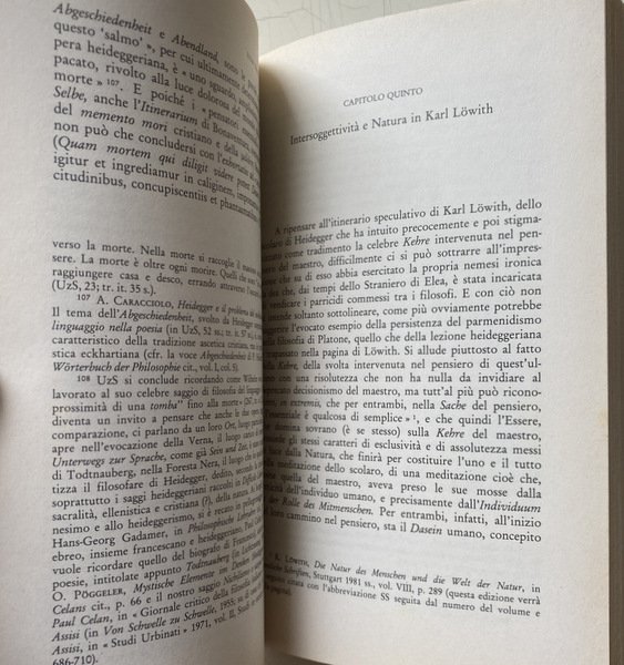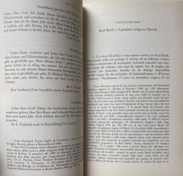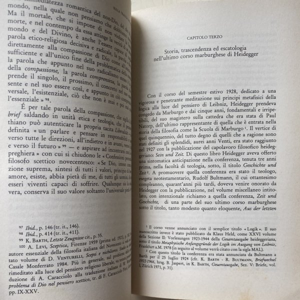Nel dialogo, qui avviato, che intende obbedire unicamente al principio della Liberalität, entrano via via figure di pensatori come Ernst Troeltsch, Karl Barth, Martin Heidegger, Karl Löwith, Paul Celan e Pietro Piovani.