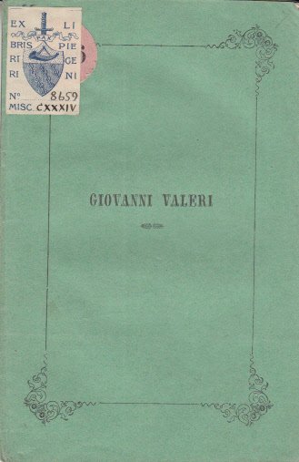 In-16 (Cm 17x 11), pp. 24, brossura editoriale. ex libris Pieri Gerini. Qualche piccola ingiallitura sparsa, ordinari segni del tempo. BUONO - "Il seguente discorso fu letto nella Scuola de' Padri di Famiglia in Firenze in occasione del sindacato della pirma domenica di Febbraio". Giovanni Valeri fu professore di diritto criminale nell'università di Siena. Nacque a Grosseto nel 1775. Nel 1814 fu eletto professore di criminale diritto nella università di Siena, nel 1823 cominciò a scrivere nell'Antologia giornale fondato da Giovan Pietro Viesseux. La sua salma fu seppellita dentro il duomo di Grosseto.