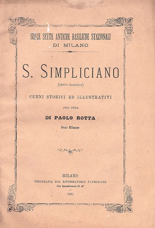 Sulle sette antiche basiliche stazionali di Milano. S. Simpliciano (sesta basilica). Cenni storici e illustrativi