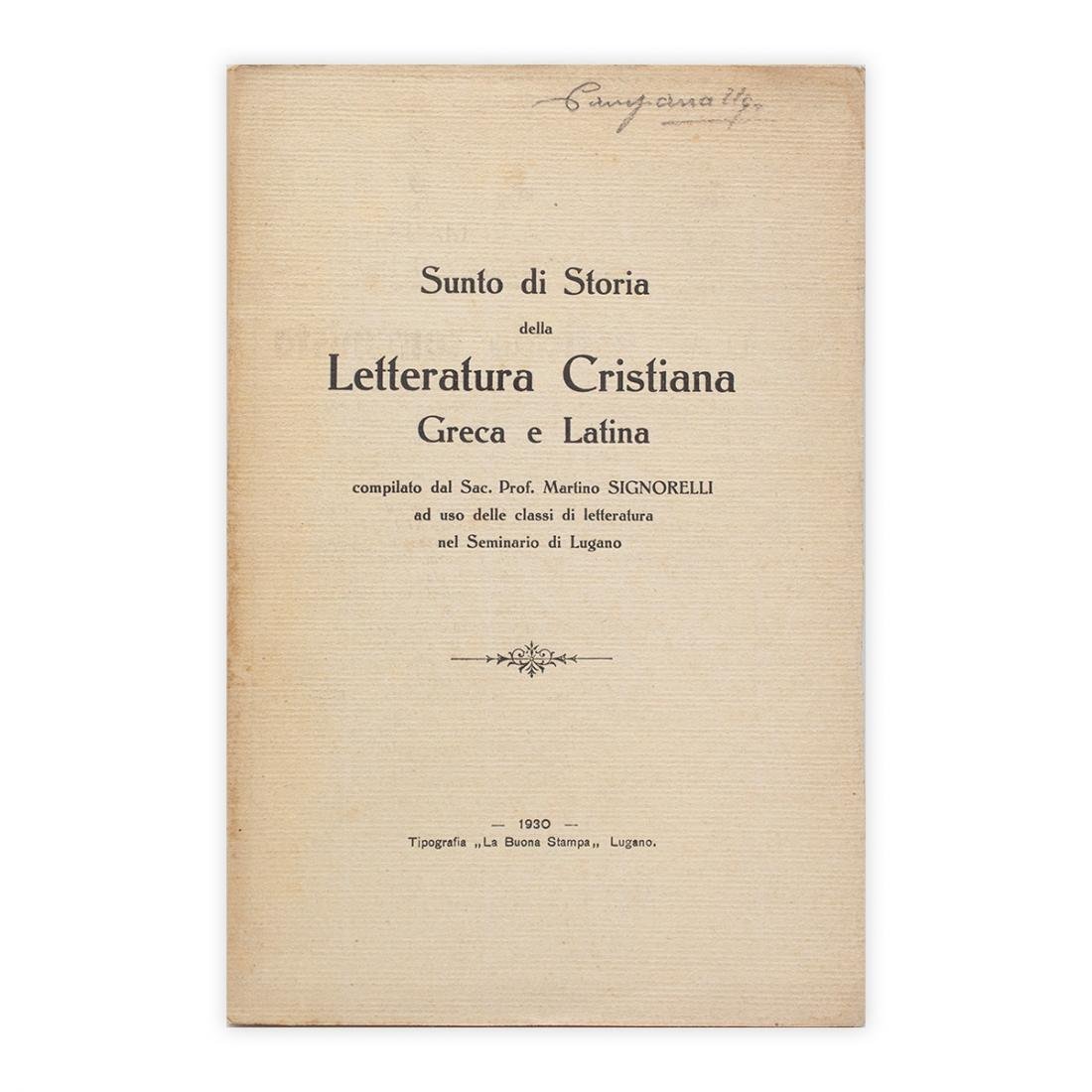 Sunto di Storia della Letteratura Cristiana, Greca e Latina