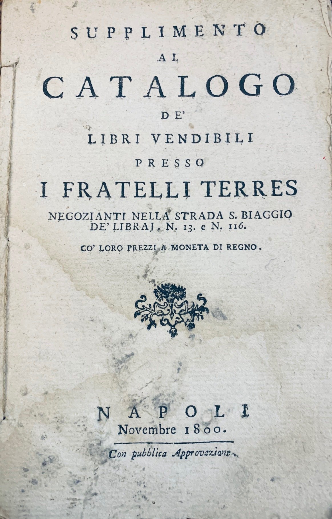 Supplimento al catalogo de' libri vendibili presso i fratelli Terres.