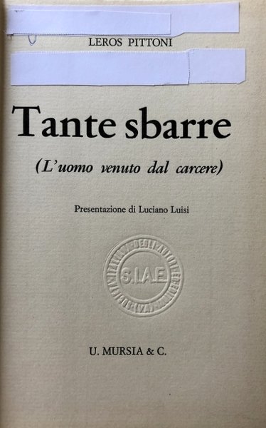 TANTE SBARRE. (L'UOMO VENUTO DAL CARCERE) | Libros antiguos y modernos | Leros Pittoni