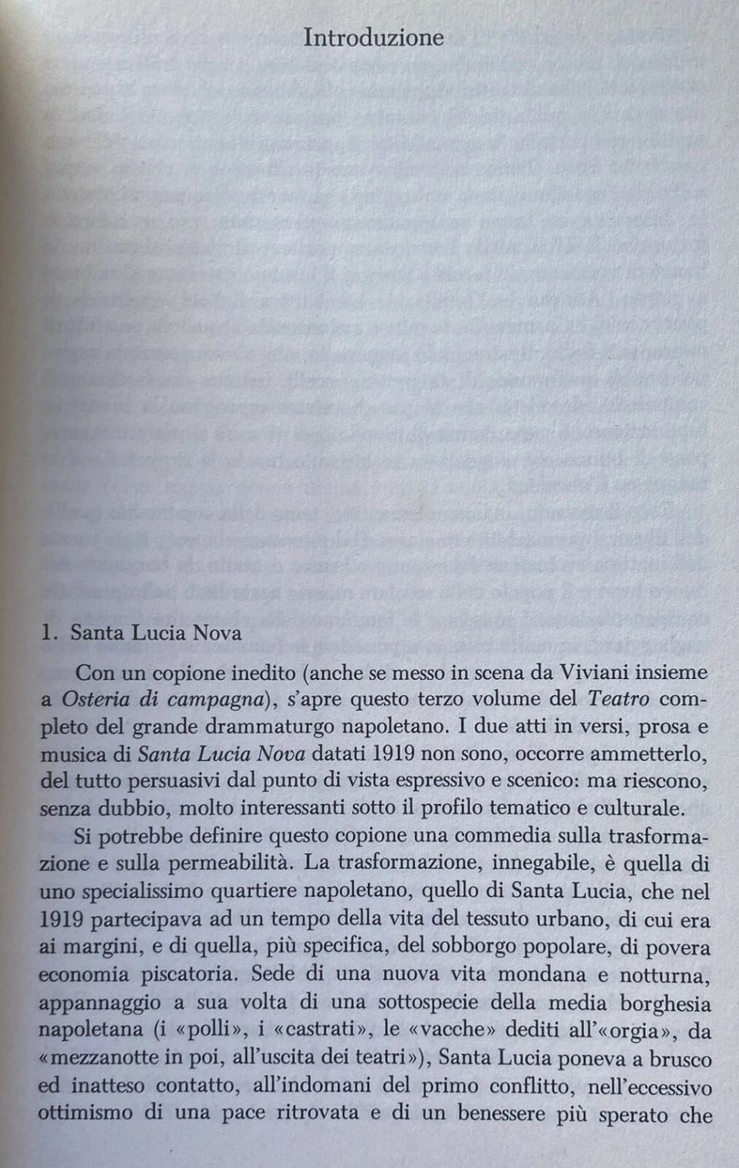 Soggetti: Teatro napoletano Testi teatrali Storia Edizioni critiche Opere Musica Archivio Copioni Goffredo Fofi Biblioteca teatrale del Burcardo Commedie scelte Antologie Raccolte Libri rari Vintage Fuori catalogo Collezionismo Da collezione Consultazione Riferimento Bibliografia Napoli Versi Prosa Cultura napoletana Capri Sorrento Pompei Inediti Drammi Drammaturgia Comunità circensi Circo Personaggi Intreccio Coro Miseria Povertà Mestieri Triangoli amorosi Omicidio Mergellina Tradimenti Gennarino O figlio d'a Madonna Palomma 'O diavulone Cicciariello Zingare Tragedia vivianea Piazza del Carmine Risanamento Quartieri Città Novecento Amanti Zenobia Classici Ciccio Carmeniello Scemulillo Atti Vicoli Giacinto Proletariato Piccola borghesia Vicenza Peppino Tragedie Glossario Dialetto Arti performative Scenografia Scena Spettacolo Musiche Successi Capolavori Pubblico Repertorio pittoresco Tipi Macchiette Napoletanità Gergo Modi di dire Compositori Musicisti napoletani Drammaturghi italiani del XIX secolo Poesia Umorismo Sarcasmo Comico Eduardo Scarfoglio Scarpetta Lucio D'Ambra Arte Novelle Varietà Caffè Concerto Canzoni Dialettale Letteratura Palcoscenico Nino Taranto Carnevale Bracco Maschere Stabile di Roma Luisella Viviani Elvira Donnarumma Regina Bianchi Attori Attrici Amedeo Girard Omar Calabrese Tecla Scarano Dante Maggio Tournée Piedigrotta Canzone Drammatici Pulcinella Montevergine Folklore Tradizioni culturali Impresari Sociale Fascismo Anni Venti Trenta Assunta Spina Mese Mariano Sala Umberto Compagnie Stagioni Scugnizzo Eden Enrico Cannio Totò Nuovo Maria Di Majo Jovinelli Rino Genovese Salvatore di Giacomo Ferdinando Russo Roberto De Simone Popolaresca Operetta Sottosviluppo Romanza da camera Periodiche borghesi Salotti Figlie Yvonne Luciana Santa Lucia Maruzzaro Concettina Mendicante Prestigiatore Zi Taniello Ostricaro Ostricaio Borgo Pescatori Luciane Carmenella Marina e Surriento Topoi Vacanze Hotel Tramontano Scene Popolari Guacci Malato Salzano Apparati Portinaio Vicenzino Mmaculatina Sposalizio Spusarizio Matrimonio Nozze Neapolitan Theater Theatrical History Critical Fine editions Works Music Archive Scripts Library Selected comedies Anthologies Collections Rare Out of print books Collectibles Consultation Reference Bibliography Naples Verses Prose Culture Pompeii Unpublished Dramas Dramaturgy Circus communities Characters Intertwining Chorus Misery Poverty Professions Love triangles Murder Betrayals Gypsy Vivianic tragedy Recovery Neighborhoods Cities Twentieth century Lovers Classics Acts Alleys Proletariat Lower bourgeoisie Tragedies Glossary Dialect Performing arts Scenography Entertainment Successes Masterpieces Audience Picturesque repertoire Types Spots Slang Idioms Composers Musicians Italian playwrights Nineteenth Poetry Humor Sarcasm Comic Short stories Variety Café Chantant Coffee Songs Literature Stage Carnival Masks Actors Actresses Dramatic texts Cultural traditions Impresarios Twenties Thirties Marian month Companies Seasons Popular Underdevelopment Chamber romance Bourgeois periodicals Salons Daughters Beggar Magician Oystermaker Village Fishermen Holidays Apparatuses Porter Marriage Wedding accussí Allegro atto avvicina BARONE basso battute bella buono CAMERIERE canto capa CARMINE casa CATERINA ccà cchiú chella chesto chillo chisto Ciccillo comico compagni contadini coro destra dice dint Don GREGORIO MARIANO DONNA NTUNETTA Donna Rosa entra facimmo FANNY Fatella festa figlio Filuccio GENNARINO GERETIELLO GIGINO GINETTA Giulio guarda Gué indica JENNARIELLO Lucia male manco mano Manuele MENDICANTE MENECA Mimì Napoli NUNZIELLO PAPELE parla Pausa pecché Peppeniello Piedigrotta piglia quanno ragazza ridendo Riggenella SABATIELLO sape seguito sera signore solde Spezza musica sposa STRANZILLAO suono TANIELLO Teatro tene TERESA terra testo TETELLA Urzulella VASTIANO veni verso VICENZINO voce voglio vuie vulite