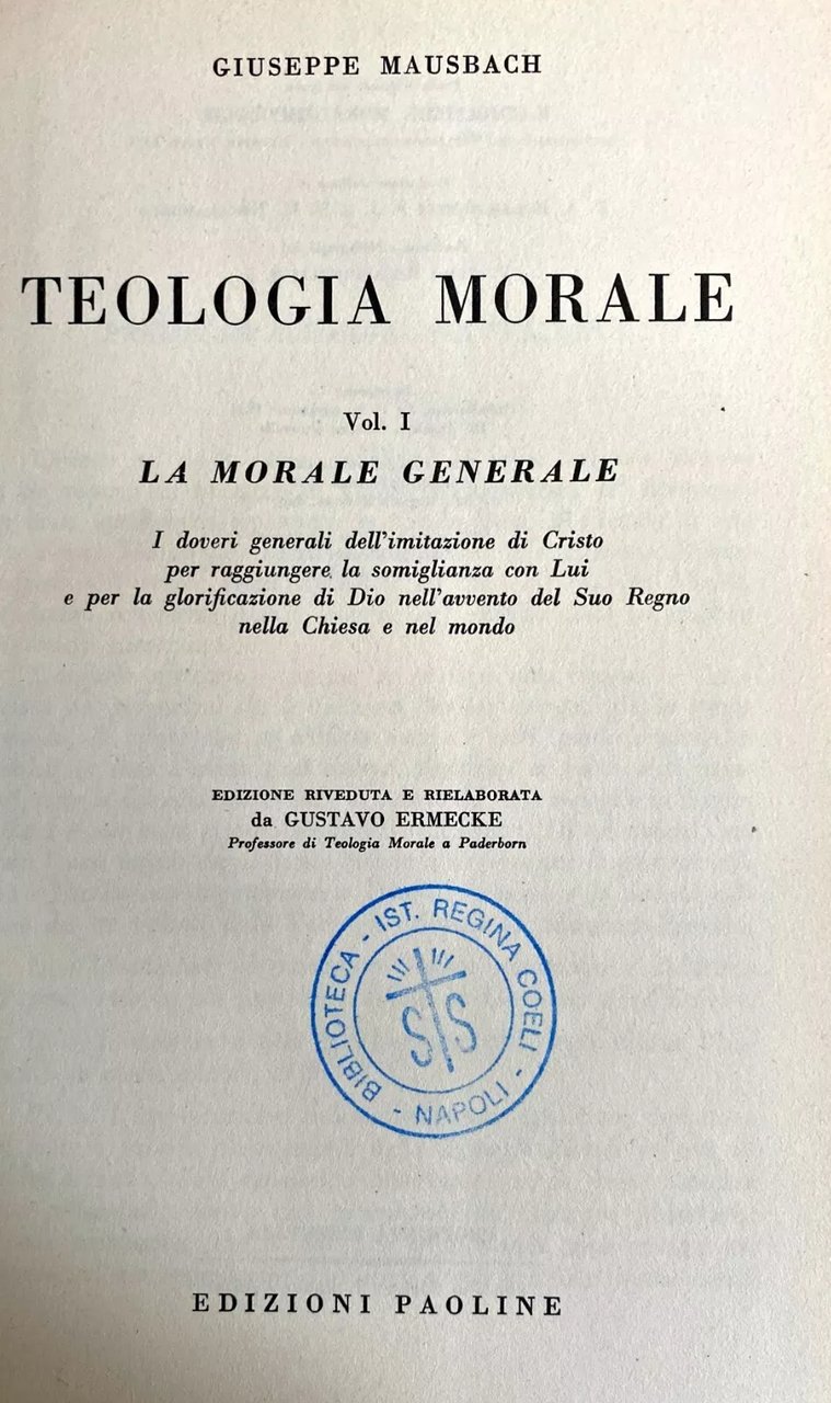- Manuali, Libri rari, Libri fuori catalogo, Teologia, Teologia morale, Riferimento, Bibliografia, Studi biblici, Religione, Cristianesimo, Cattolicesimo, Etica, Doveri religiosi, Chiesa cattolica, Carità, Gesù Cristo, Comandamenti, Coscienza, Dottrina, Dogma, Bibbia, Vangeli, Fede, Grazia, Dio, Libertà, Rivelazione, Salvezza, Scolastica, Secolarizzazione, Peccati, Santità, Moralità, Filosofia, Sacramenti, Edizioni pregiate, Collezionismo, Didattica, Insegnamento, Cristologia, Patristica, Gloria, Virtù Teologali, Imitazione di Cristo, Sacre Scritture, Tradizione, Esegesi biblica, Ontologia, Metafisica, Critica, Interpretazione, Libero arbitrio, Volontà, Dogmatica, Mistica, Speculazione, Apologetica, Doveri, Saggistica, Saggi, Opere teologiche fondamentali, Catechesi