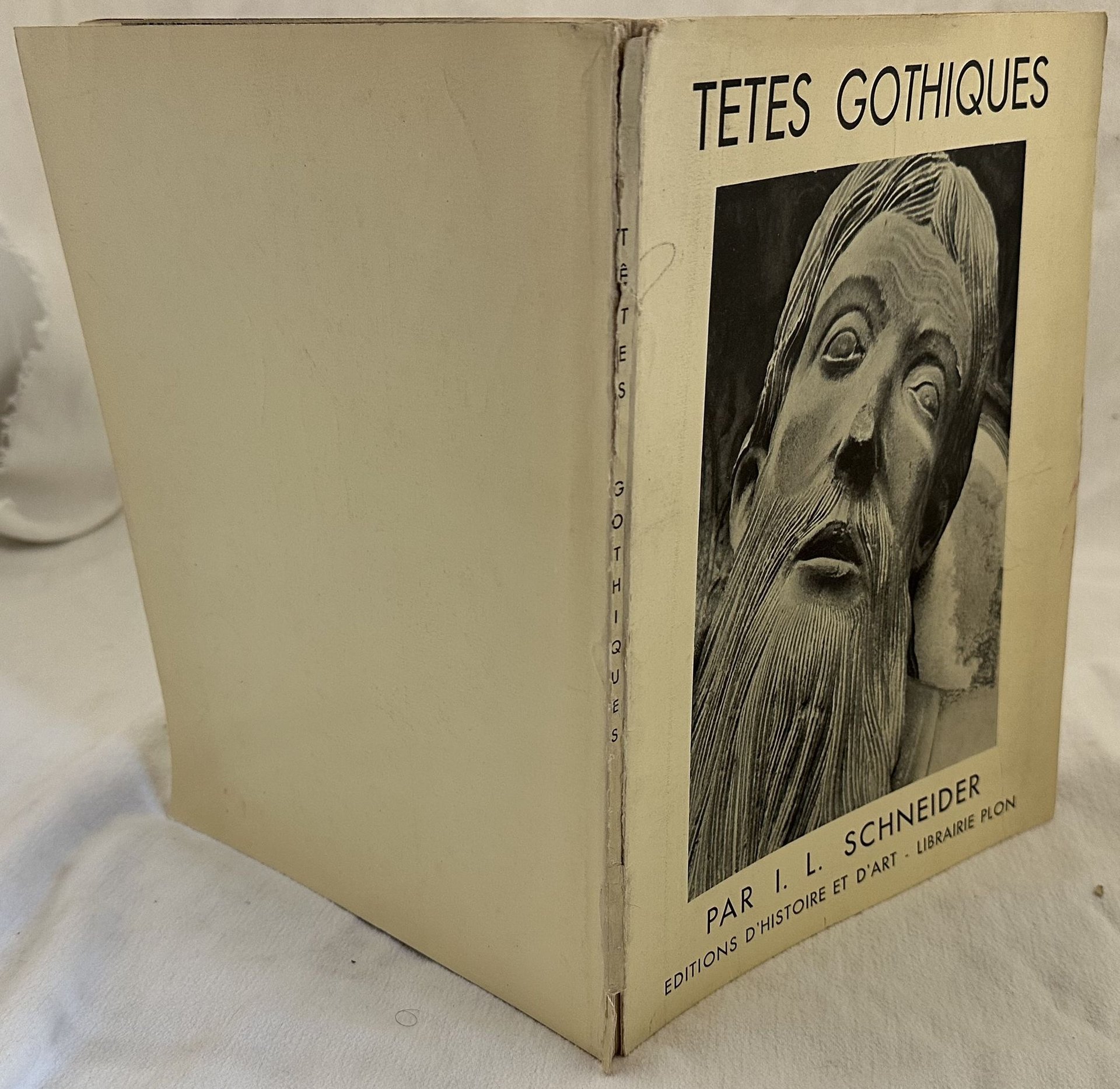 Edizione del 1935 di questo volume fotografico di arte gotica a cura di Schneider. Dedica dell'autore senza firma. In discrete condizioni. Copertina editoriale in discrete condizioni generali con usure e mancanze ai margini e dorso. Legatura in buone condizioni. Pagine in ottime condizioni. In 4. cm 29,5x22,5. Pp. (48).Edition of 1935 of this photographic volume of gothic art by Schneider. In fair conditions. Editorial cover in fair conditions lightly worn with lackings in the extremities. Binding in good conditions. Pages in very good conditions. In 4. cm 29,5x22,5. Pp. (48).