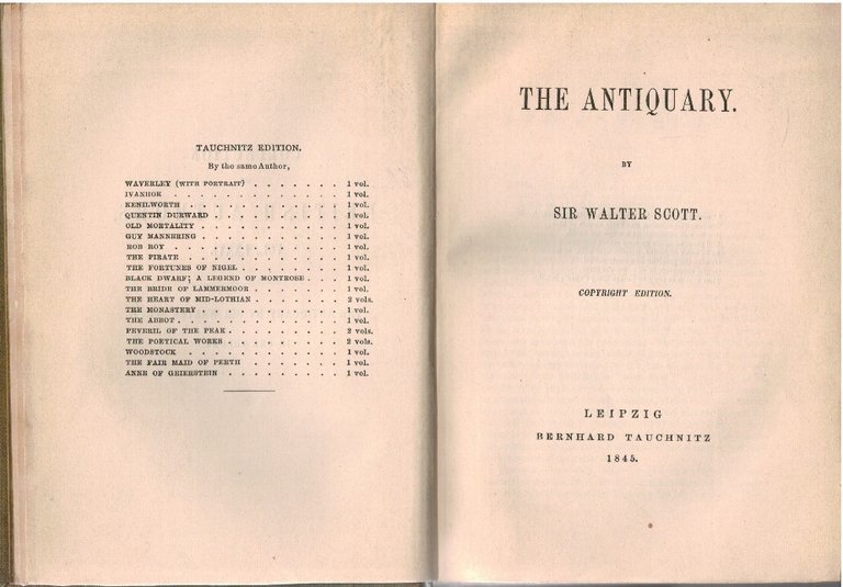 Legatura in tela verde rigida con tassello al dorso impresso in oro. Non comune edizione della "Collection of British Authors" volume LXXVI. Legatura solida pagine naturalmente ambrate ai bordi, opera ben conservata. In lingua inglese