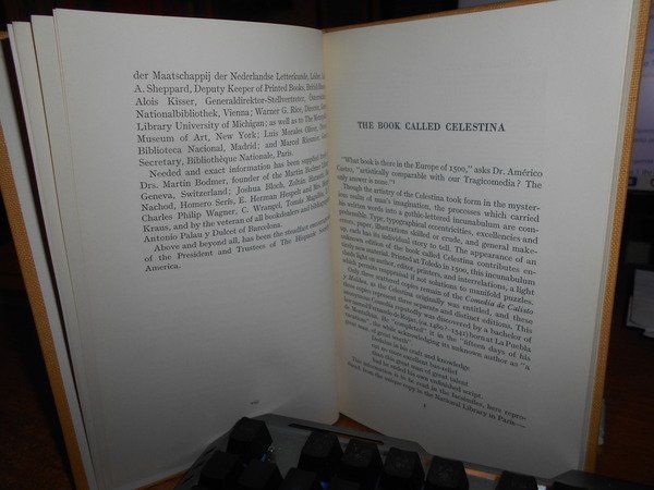 Clara Louisa Penney. New York, Printed by Order of the Trustees, 1954. The Book Called CELESTINA in the Library of the Hispanic Society of America. In-8°, tela con titoli in rosso sul piano e al dorso. viii, 157 pp. con numerose illustrazioni nel testo. Ottimo esemplare. Uff. E - II - 1