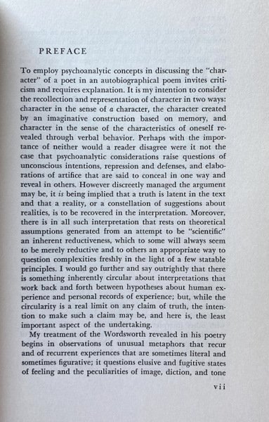 Soggetti: William Wordsworth, Critica letteraria, Letteratura inglese, Psicanalisi, Biografie, Memorie, Opere, Lavori, Scritti, Poetica romantica, Poemi, Poesia, Vita, Viaggio, Personalità, Collezionismo, Studi letterari, Studi culturali, Libri da collezione, Libri Vintage Fuori catalogo, Samuel Taylor Coleridge, Romanticismo, naturalismo inglese, Lyrical Ballads, Ballate liriche, Il preludio, Lake District, Letteratura romantica, Prefazione, Robert Southey, Lake Poets, Rivoluzionario, Anarchici, Libertari, Mary Hutchinson, Tintern Abbey, Ballata del vecchio marinaio, Preface to Lyrical Ballads, The Recluse, Il recluso, Language really spoken, Blank verse, Etica della natura, Ottocento, Estetica, Sublime, The Solitary Reaper, Poeti britannici, The Prospectus, Sonneteers, Anglican poets, Growth of a Poet's Mind; An Autobiographical Poem, Sister Dorothy Wordsworth, Two-Part, The Excursion, John Milton's Paradise Lost, Childhood and School-Time, Imagination and Taste, How Impaired and Restored, Spiritual autobiography, Self-consciousness, Coscienza, Dephts, Response, Obsession, Hermetic Adventure, Memories, Imaginings, Immaginazione, Metafore, Metaphors, London, Cambridge, Mind, Man, Self, Vale, History, Father and Son, Arab, Wanderer, Druid, Christian, Revelation, Finzioni, Ideali, Sogni, Dreams, Fantasies, Bibliografia, Riferimento, First editions, Freud, Erikson, Beaupuis, Klein, Jung, Ambivalence, Prime edizioni, Literary criticism, English literature, Psychoanalysis, Biographies, Memories, Works, Works, Writings, Romantic poetics, Poems, Poetry, Life, Travel, Personality, Collecting, Literary studies, Cultural studies, Collectible books, Out of print books, Romanticism, naturalism English, Romantic literature, Revolutionary, Anarchists, Libertarians, Rime of the old sailor, Ethics of nature, Nineteenth century, Aesthetics, Sublime, The Solitary Reaper, British poets, Imagination, Fictions, Ideals, Dreams, Dreams, Fantasies, Bibliography, Reference