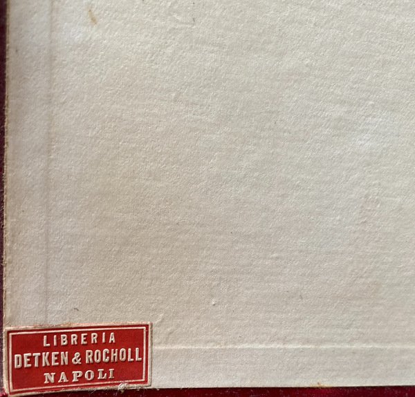 FOR COLLECTORS: EX-LIBRIS IN ANTIPORTA WITH ADHESIVE FOR THE COMMEMORATION OF THE BOMBARDING ON NAPLES ON 10-11 MARCH 1918 (FIRST WORLD WAR), SIGNATURE OF BELONGING IN THE ANTIPORTA, AND TAG OF THE DISAPPEARED LIBRARY DETKEN & ROCHOLL IN NAPLES.
