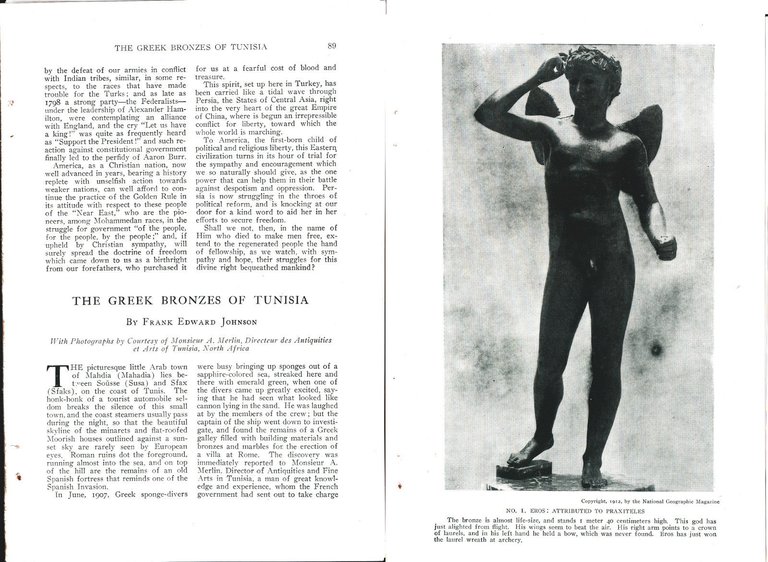 The greek bronzes of Tunisia - F.E. Johnson. Da National Geographic 1912