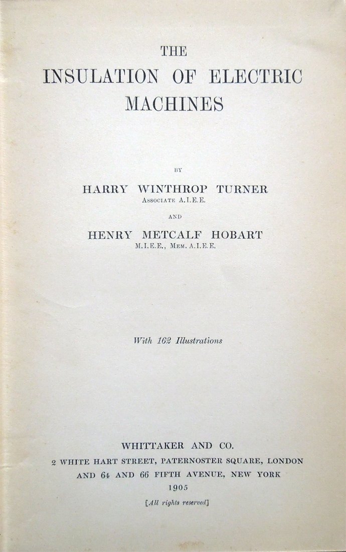 The Insulation of Electric Machines, by Harry Winthrop Turner, Associate A. I. E. E., and Henry Metcalf Hobart, M. I . E. E., Mem. A. I. E. E. With 162 Illustrations
