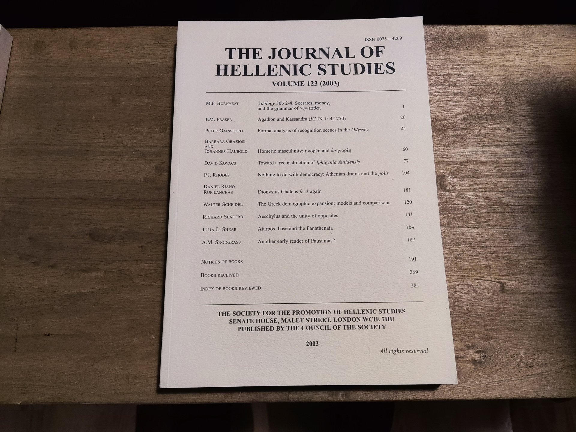 The Journal of Hellenic Studies Volume 123 Society for the Promotion of Helllenic Studies - 2003 Volume in ottime condizioni, minimi segni del tempo. Non esitate a contattarci per altre foto o richieste. Saremo lieti di soddisfare ogni vostra esigenza.