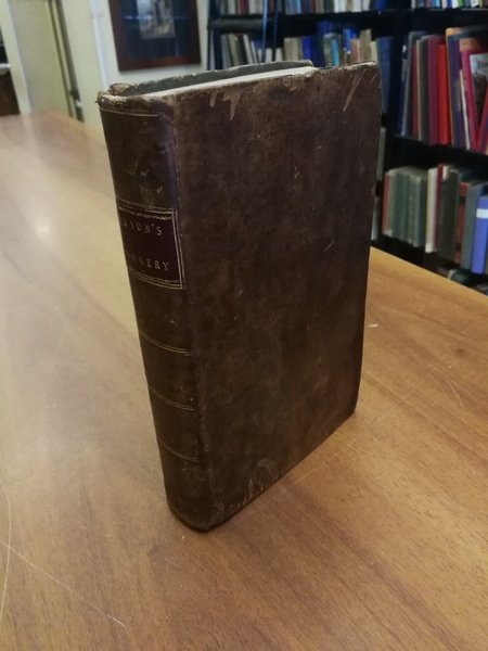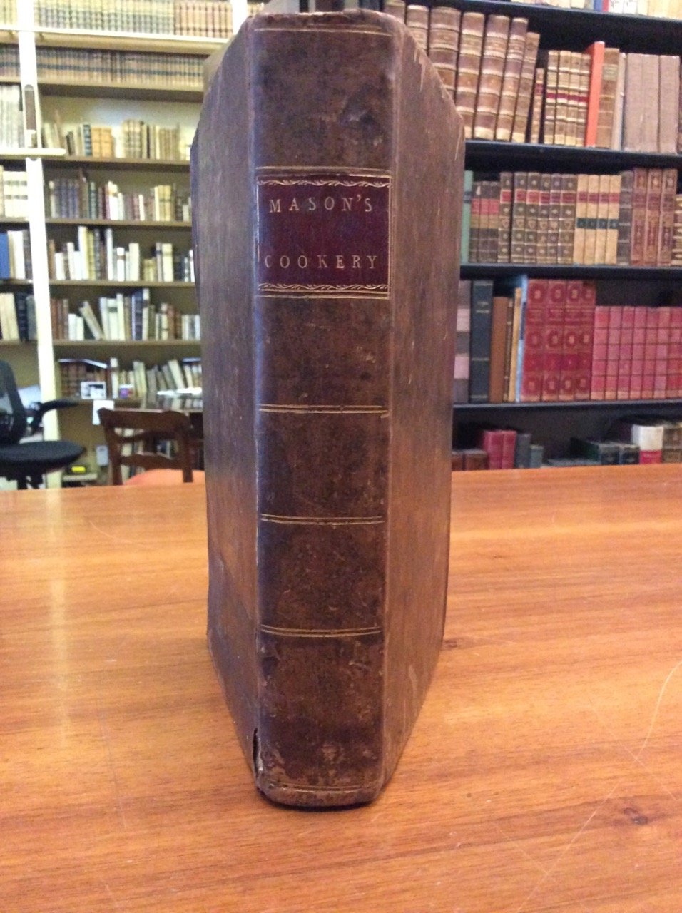In-8 p. (mm. 210x125), p. pelle coeva, titolo oro su tassello al dorso, pp. (20),484,(20). Sesta edizione (la prima è del 1773), containing the most select bills of fare, properly disposed, for family diners of five dishes to two courses of eleven and fifteen; with bills of fare for suppers, from five dishes to nineteen; and several desserts; including the fullest and choicest receipts of various kinds, and full directions for preparing them in the most approved manner, by which a continual change may be made, as wanted, from the several bills of fare. Likewise direction for brewing, making English wines, raspberry, orange, and lemon-brandies, &c. Also remarks on kitchen-poisons, and necessary cautions thereon.Cfr. Whitaker Oxford English cookery books to the year 1850, pp. 107-8: It seems an excellent and well-arranged book, but few people now would care for viper broth' - Vicaire, p. 572 - Bitting, p. 312. Ben conservato.