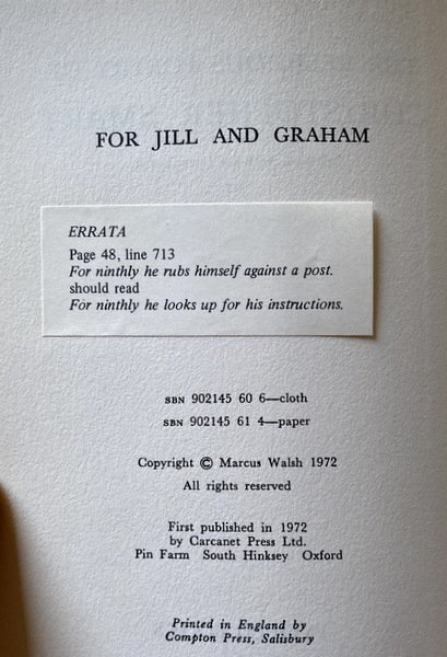 Editore/Publisher: Salisbury: Carcanet Press 1972
