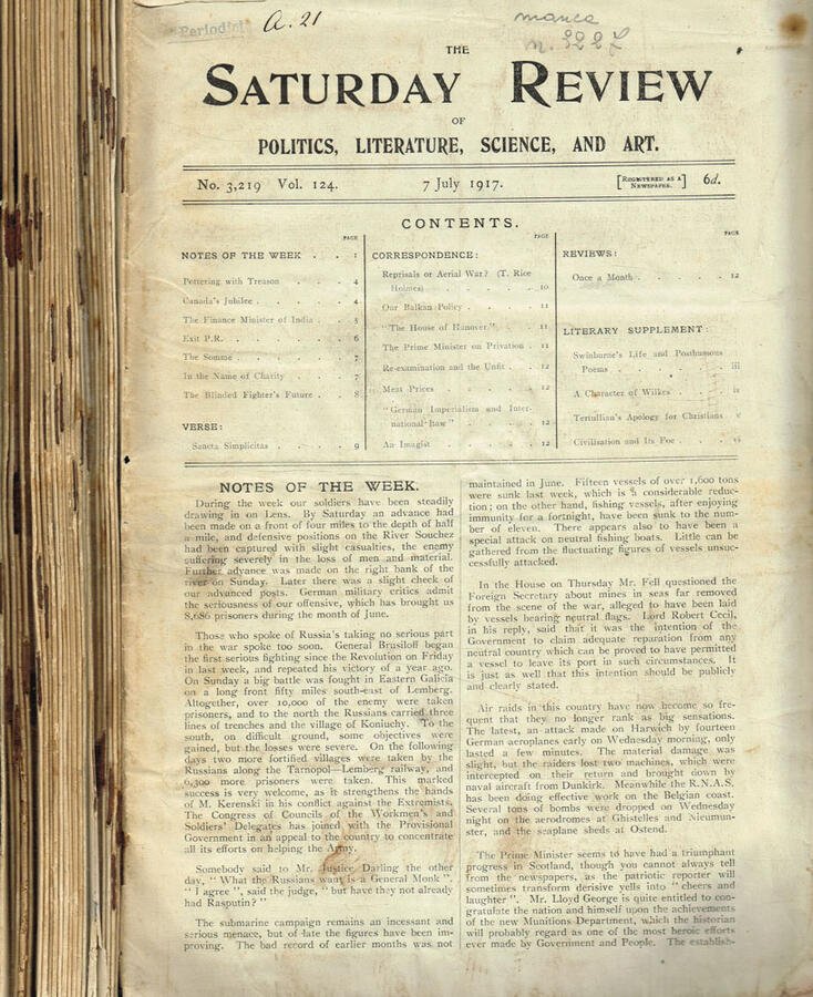 The Saturday review of politics, literature, science and art. vol.124, 1917