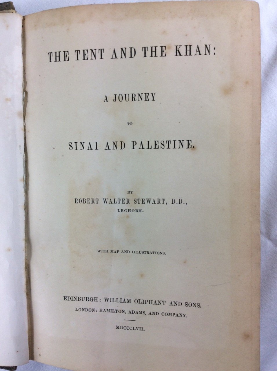 In-8 p. (mm. 216x142), tela editoriale, pp. XVI,528,8, con 1 veduta di Gerusalemme fuori testo e alc. figg. inc. su legno nel testo "The desert, Cairo, Suez, Feiran, Ghebel Mousa, Nukhl, Beersheba, Jerusalem, the Jordan and The Dead Sea, Tiberias, Lebanon and Damascus". Manca la carta geografica. Pagg. ingiallite per la qualità della carta, qualche lieve fiorit. ma buon esemplare.