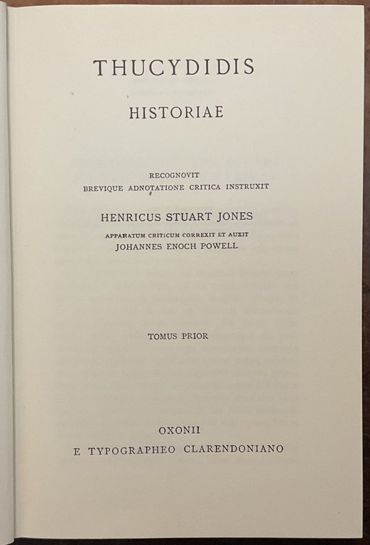 Thucydidis. Historiae. Tomus prior. Recognovit brevique adnotatione critica instruxit Henricus Stuart Jones