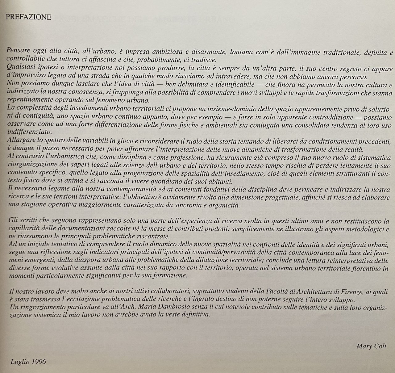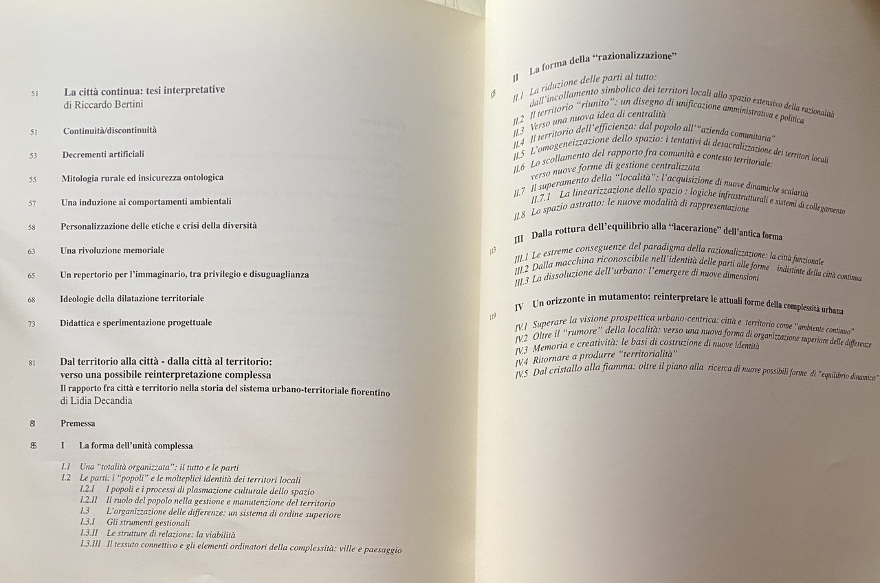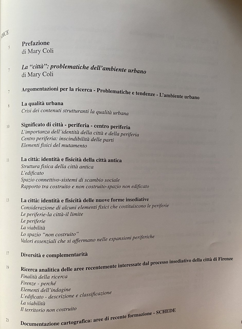 Soggetti: Firenze Pianificazione urbanistica Architettura Ecologia Ambiente Pianificazione territoriale Toscana Parchi Città Edilizia Riforma Trasformazioni ambientali Spazio urbano Libri illustrati fuori catalogo Saggi Insediamento Problematicità Qualità della vita Crisi Centro Periferia Edificato Relazioni Costruzioni Costruito Identità culturale Viabilità Periferie Traffico Vuoti Documentazione Cartografia Mappe Territorio Carte Discontinuità Teorie urbanistiche Campagna Mitologia rurale Verde urbano Comportamento Tutela Disuguaglianze Didattica Rumore Visione Urbano-centrica Equilibrio Città funzionale Razionalizzazione Omogeneizzazione Località Gestione Scollamento Tessuto Contesto Centralità Efficienza Sperimentazione progettuale Progettazione Progetti Ville Paesaggio Case Abitazioni Manutenzione Plasmazione Rapporto Popolazione Cittadinanza Unificazione amministrativa Esclusività Razionalità Creatività Memoria Trasformazioni Rivoluzione Differenze Continuità J. Hillmann Anni Settanta Anni Cinquanta Anni Sessanta Prato Pistoia Castello Strade Unità Contado A. Bacchetti Fortezza da Basso Ideologia Tendenze Restauro Ristrutturazioni Abbandono Socialità Luoghi Scambio sociale Planimetrie Estetica Bellosguardo Collina Pianura Arno Attrezzature Servizi Funzioni Anni Novanta ISTAT Pisa M. Morandi Vettoretto Censis Sesto Fiorentino Campi Bisenzio Calenzano Novoli Signa Impruneta Montelupo Scandicci Fiesole Ripoli Montemurlo Immobiliare Domanda Offerta Bagnasco Densità Giddens Lyotard Sociologia Virilio Lavoro Cinesi Fabbriche Immigrati Immigrazione Integrazione Sistema Donnino Controlli Leggi Leonardo Bruni Giancarlo Paba Baldeschi Emilio Sereni Autorità Mariolina Besio Cupola Brunelleschi Duomo Centro storico Turismo Localismo Capitalismo Habermas Parchi Leonida Pindemonte Villini Viali Vie Espansione Degrado Metropoli Giovanni Michelucci Residenziale Edoardo Detti Università Mobilità Provincia Tesi interpretative Florence Urban planning Architecture Ecology Environment Territorial planning Tuscany Parks City Construction Reform Environmental transformations Urban space Illustrated books out of print Essays Settlement Problems Quality of life Crisis Center Periphery Built-up Relationships Constructions Built Cultural identity Viability Suburbs Traffic Empty Documentation Cartography Maps Territory Maps Discontinuity Urban planning theories Countryside Mythology rural Urban green Behavior Protection Inequalities Education Noise Urban-centric vision Balance Functional Rationalization Homogenization Locality Management Fabric disconnection Context Centrality Efficiency Design experimentation Design Projects Villas Landscape Houses Maintenance Shaping Relationship Population Citizenship Administrative unification Exclusivity Rationality Creativity Memory Transformations Revolution Differences Continuity The Seventies Years Fifties Sixties Castle Streets Unity Ideology Trends Restoration Renovations Abandonment Sociality Places Social exchange Plans Aesthetics Bellosguardo Hill Plain Equipment Services Functions Nineties Real estate Demand Offer Density Sociology Work Chinese Factories Immigrants Immigration Integration System Controls Laws Authorities Dome Cathedral Historic center Tourism Localism Capitalism Parks Avenues Streets Expansion Degradation Metropolis Residential University Mobility Province Interpretative theses