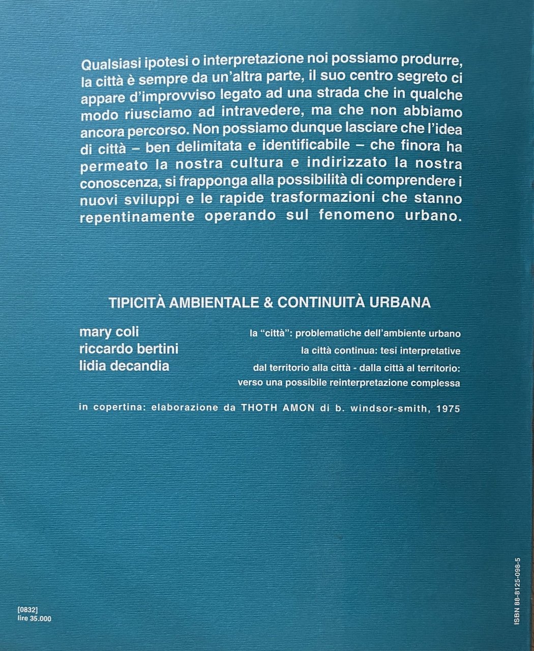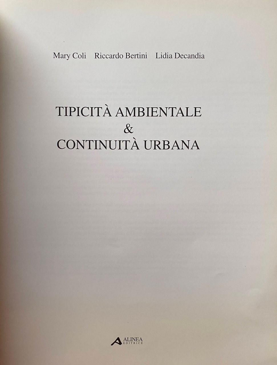 TIPICITÀ AMBIENTALE & CONTINUITÀ URBANA | Libros antiguos y modernos | Mary Coli, Riccardo Bertini, Lidia Decandia