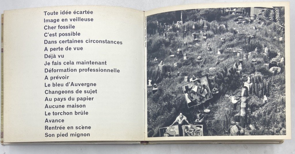 Cartonato editoriale illustrato, cm 17.5 x 19, pp (136) illustrate in nero. Testo in francese. Difetti sui bordi della copertina, ben conservato internamente. Curiosa opera a più mani di area COBRA, il volume accompagna le «note sulle sparizioni, le perdite di senso, le difficoltà di trasmissione, gli oblii, le mancanze e le persistenze dell'inutile» di Pierre Alechinsky alle immagini, scattate da Suzy Embo, delle sculture di mollica di pane di Reinhoud d'Haese (1928 - 2007) e ad alcuni disegni («briciole ornamentali») di René Bertholo.