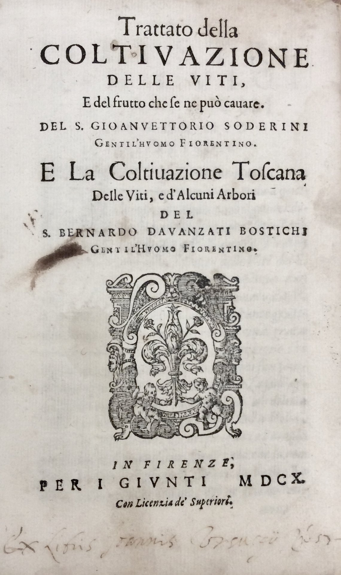 TRATTATO DELLA COLTIVAZIONE DELLE VITI E DEL FRUTTO CHE SE NE PUÒ CAVARE - E la Coltivazione Toscana delle viti e d'alcuni arbori di BERNARDO DAVANZATI BOSTICHI.
