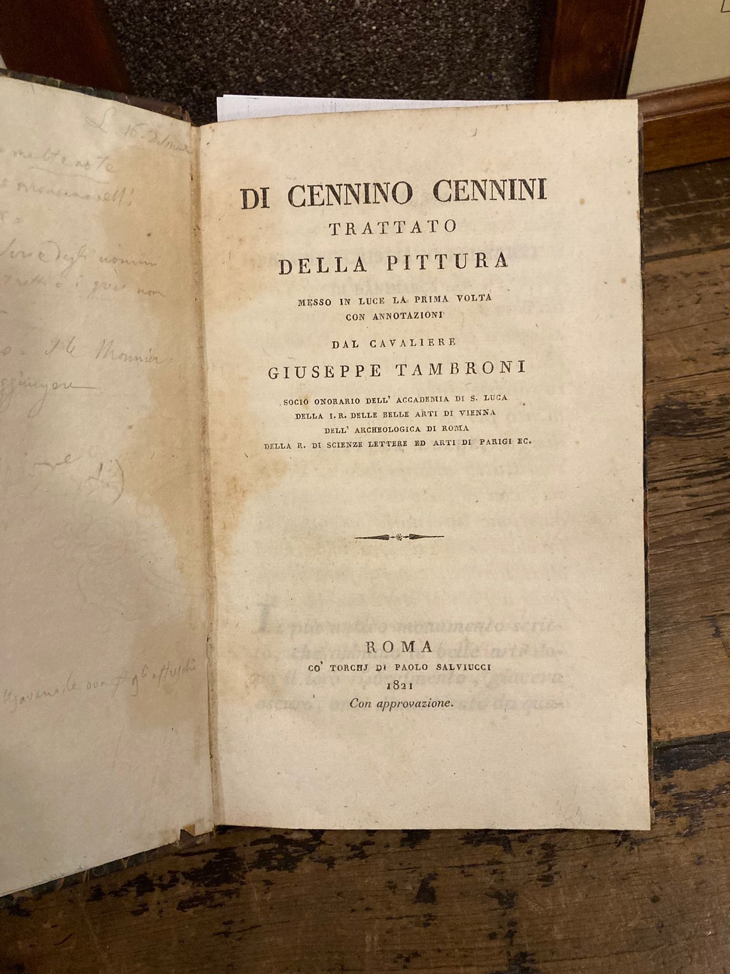Trattato della Pittura. Messo in luce la prima volta con annotazioni dal Cavaliere Giuseppe Tambroni socio onorario dell'Accademia di S. Luca della I. R. delle Belle Arti di Vienna dell'Archeologica di Roma della R. di Scienze Lettere ed Arti di Parigi | Libros antiguos y modernos | Cennini Cennino