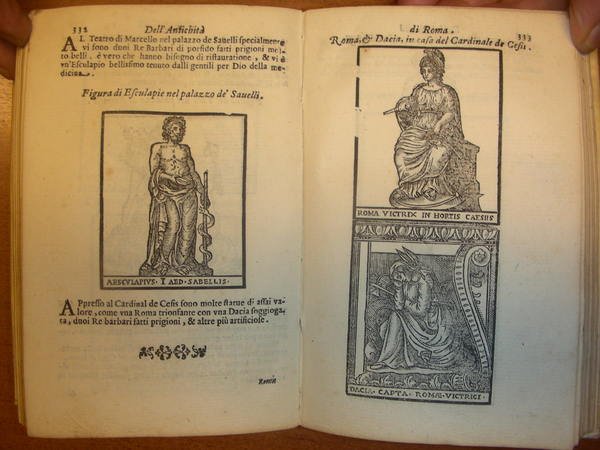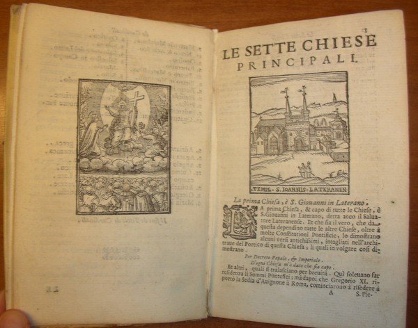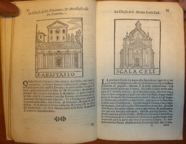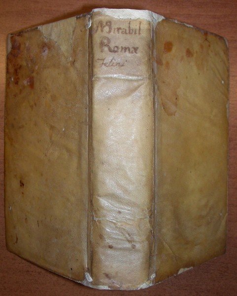 2 parti in un gr. vol. in-8, pp. (16), 436, (4), leg. p. perg. coeva con tit. mss al d. Front. a due colori e vignetta xilogr. Con centinaia di gr. incis. in legno anche a p. pagina raff. monumenti di Roma. Rara ediz. sconosciuta al Rossetti che cita al n. 4954 la stessa opera con la data 1610. È curioso che nel front. del ns. esempl. in cui appare chiara la data 1615 vi sia una correzione a penna con la data 1610. Piantanida cita opera simile come ediz. orig. ma del Settecento. Fossati Bellani 688. Ottimo esempl. [044]