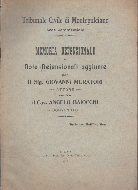 Tribunale Civile Di Montepulciano Memoria Defensionale Avv. Martini Siena 1915