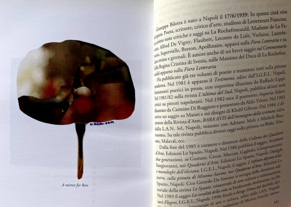 Giuseppe Bilotta è un eccezionale artista pittore, scrittore, poeta, studioso di letteratura francese, nato a Napoli nel 1939. I suoi scritti di critica letteraria sono per anni apparsi su Fiera Letteraria. Dal 1984 è direttore della rivista d'Arte Rara Avis dell'immagine della scrittura. Dalla fine del 1985 è curatore e direttore della Collana dei Quaderni D'Arte, Edizioni Lo Spazio. Nel 1996 fonda Dromena. Il ritorno segreto dell'immagine, un Almanacco. Tra i numerosi scritti d'Arte, i più recenti sono Fermo punto della luce di Jean de Polignac, Poesie, ed. Marcus del 2003, Renato Caccioppoli per immagini con prefazione di Gerardo Marotta, I.G.E.I., Napoli 2005. Nel 2008 esce la prima edizione di Trittico per Rosa, un Poema, edito dall'Istituto Culturale del Mezzogiorno di Napoli. Nel frattempo continuano le sue mostre pittoriche, in Gallerie di rilievo, che il noto artista continua a produrre nel suo studio di Monte di Dio. Nel 2015 esce la nuova edizione di Trittico per Rosa, introdotto da Antonio Filippetti, in cui sono comprese alcune sue pitture, per le Edizione di Arti Grafiche Zaccaria. Giuseppe Bilotta nel suo poema racconta il suo amore per Rosa, una fanciulla, forse immaginaria? Ella appare identificata nei luoghi della città, poiché di lei egli parla, a lei si rivolge con amore, alla sua grazia, alla sua bellezza, richiamandosi in continuo ai luoghi, ai monumenti, alle piccole strade, i vicoli, con rispetto e amore, ricordando la storia, le origini auliche della straordinaria città in cui egli vive. Leggiamo alcuni punti in cui egli ricorda anche i luoghi della città: "Con la tua pelle di porcellana senza imperfezioni, lineamenti perfetti e figura voluttuosa in cui si cela la spinosità e la voluttà della rosa, da me amata come nessuno ti amerà mai, da me elevata con la forza dell'amore alla suprema armonia delle sfere, ti sei stretta brevemente a me con calore, esprimendo con baci caldi l'amore, che trasmetti ai miei sensi ardenti, a esuberanze, a suggelli, a intimi invaghimenti di forme significanti della vita secondo i tesori della lingua. “Nei Chiaroscuri della via dei Tribunali, sosto spesso incantato dallo spirito di Caravaggio che sento aleggiare nell'aria, come lo spirito di Lucrezio, di Virgilio e Leopardi, che mi abbracciò ai piedi del Vesuvio, dopo la cena nello studio di Brûlé”. …"Al Pio Monte della Misericordia, davanti alla celebre opera caravaggesca, ispirata dai caratteristici vicoli napoletani… Con tale condizione di spirito, son destinato ad andare alla ricerca fremente di te, sul segno del tuo passaggio e sul segno lasciato dalle mie parole di passione"… "Magicamente agile è il mio genio che coglie, con acutezza visiva, aspetti del tuo carattere e della tua psicologia, più nobile della nobile scala che salgo di Palazzo Calabritto rifatta da disegno di Luigi Vanvitelli mentre, fuori, da una loggia, una donna con ceruli occhi sotto ciglia bionde, contempla l'arista azzurro del mare vicino e macchie a guazzo di alberi sulla terra ocra: angolo di mondo non sai se nascente o morente. "Senza di te, Rosa, la vita si riempie di una noia struggente, intollerabile, Ti sento di nuovo. La tua voce vibrante è con me in via Partenope con turisti stranieri a passeggio nei due sensi sul lungomare, da cui sale un alito breve e fresco". Questi sono soltanto alcuni dei versi che possiamo leggere nel Poema, che ci parlano del grande amore perduto. E andando più avanti, nelle quasi trecento pagine del libro, continuiamo a leggere le sue rime vibranti, dedicate al suo amore invocato, descritto con eleganti vagheggiamenti, senza mai dimenticare l'altro amore: la città, i suoi luoghi più umili e quelli meravigliosi, che la fanciulla gli sembra rappresentare: è anche nell'Orto Botanico, sotto due vecchie querce, "che in sogno ti prendo fra le braccia, stordito dal calore del tuo corpo, Rosa?". Dicevo che l'appellarsi continuo a Rosa, a questo amore perduto, introvabile, ma sempre presente nella sua anima, si contrappone alla presenza degli storici luoghi, giustificatamente amati e venerati dall'autore ma non a sufficienza amati e conosciuti da chi li vive. Dunque i versi, dedicati a Rosa in trecento pagine, versi eleganti ed insieme facili per i lettori, attraggono e invitano a proseguire, stimolando chi ama i luoghi, nel loro ricordo, stimolati dalla gentile visione della moderna fanciulla Beatrice che ci accompagna, Rosa. Ma Rosa è poi davvero una giovane fanciulla o non è piuttosto soltanto un fiore meraviglioso, di cui il sensibile poeta ispirato descrive le tante varietà, a noi sconosciute nella terza parte del Trittico, in RosaIar? Con i versi nel libro troviamo anche la testimonianza della attività di pittore di Bilotta, un interessante gruppo di immagini pittoriche originali, che arricchiscono il testo, un gruppo di collages, creati dall'artista in occasione della mostra esposta alla Pica Gallery, nel gennaio 2006, tipici dell’arte contemporanea nell'accostamento delle linee e dei colori.