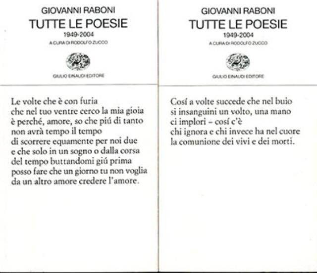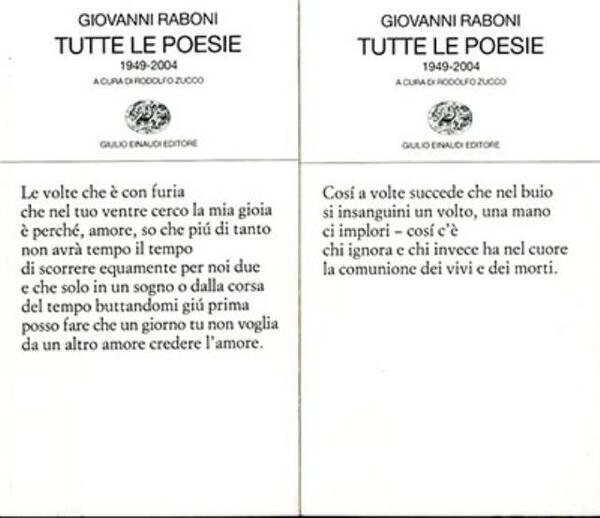 1. rist. 2 v. (XI, 287, XX, 261 p.) ; 18 x 10 cm. Collezione di poesia, 423. «Con il Porta comincia, nella poesia italiana, quella linea lombarda, potentemente realistico-narrativa e, per così dire, antipetrarchesca, che si ritrova anche all’interno della poesia del Novecento e che è l’unica della quale io aspiri a far parte, nonostante i molti debiti che so di avere nei confronti di altri poeti, da Baudelaire (che considero il piú grande poeta moderno) a Pound (che considero il più grande inventore di possibilità poetiche del nostro secolo), – e poi, per venire a nomi più vicini o addirittura vicinissimi, quasi fraterni, a Rebora, a Montale, a Saba, a Sereni». da Giovanni Raboni, «Autoritratto 1977». A cura di Rodolfo Zucco. Brossura editoriale, coperta in cartoncino flessibile plastificato opaco, titolo impresso in nero al piatto e al dorso. Codice libreria 7988.