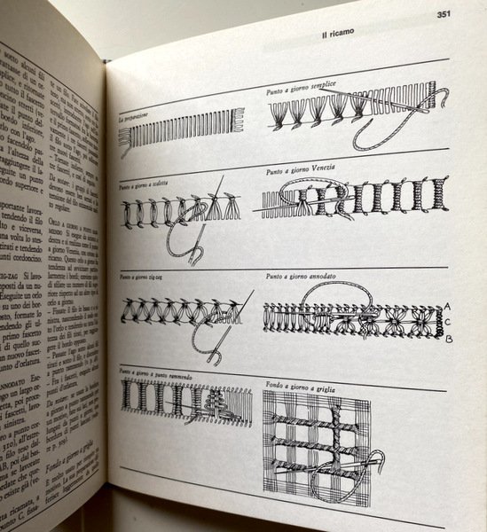 Soggetti: Manuali pratici, Lavori femminili, Donne, Lavoro a mano, Taglio, Cucito, Pizzi, Ricamo, Arti manuali, Manualità, Economia ed attività domestica, Casalinghe, Artigianato, Maglia, Ferri, Uncinetto, Cucire, Ricamare, Decorazioni, Casalinghe, Sartoria, Sarte, Libri Vintage Fuori catalogo, Guide, Storia di genere, Anni Settanta, Collezionismo, Libri illustrati, Storia di genere, Idee, Decori, Manufatti, Abiti, Vestiti, Abbigliamento, Moda, Collezione, Enciclopedie, Varia, Hobby, Tempo libero, Creatività, Therèse De Dillmont, Classici, Arte, Tessuti, Lana, Stoffe, Scuola, Imparare, Tecniche, Disegni, Schemi, Ago e filo, Orli, Cuciture, Aggiusti sartoriali, Punti, Passo passo, Consigli, Diritto, Rovescio, Beretta, Tappezzeria, Telaio, Tela, Macchina da cucire, Canovaccio, Sfilatura, Centro, Forma, Giro, Motivo floreale, Fiori, Motivi, Figure, Festone, Punto, Croce, Riferimento, Consultazione, Tappeti, Arazzi, Livre rare, Culture, Art, Loisirs, Collectif, Penelope, Courrier de la Mode, Ottocento, Novecento, Occupazioni domestiche, Casa, Lavoro, Nozioni, Strumenti, Forbici, Bottoni, Bottoniera, Orlare, Zig-Zag, Aghi, Nylon, Giochi, Pupazzi, Pezza, Bambole, Gatto, Coniglio, Animali, Bambini, Lino scozzese, Modelli, Gettate, Bordure, Cinque ferri, Guanti, Coprifasce, Cuscini, Punto Tunisi, Tovaglia fiorita, Occhiello, Rammendo, Venezia, Nodi, Merceria, Costure, Cerniere-lampo, Rifiniture, Mosche, Gancetti, Prove, Montaggio, Fodere, Tela, Spacchetti, Patte, Copriletto, Biancheria, Poltrona, Divano, Patchwork, Tasche, Maniche, Ferro da stiro, Manichino, Spille, Ditale, Gesso, Matita, Chiusure, Galloni, Nastri, Pantaloni, Passamaneria, Camicia, Mutande, Polsini, Biancheria, Cuori, Scacchiera, Pesce, Losanghe, Medagliere, Carnevale, Pierrot, Maschere, Colombina, Pigiama, Charlotte, Grembiule, tailleur, Abito da sposa, Lessico, Termini tecnici, Glossario, Accessori, Jersey, Legaccio, Accorciare, Allungare, Coperte, Francese, Svizzera, Gomitoli, A-B-C-, Liseuse, Completini, Pantofole, Calze, Nido d'api, Vimine, Nappe, Frange, Pompons, Frecce, Trecce, Gross-grains, Forcella, Scialli, Sciarpe, Cappelli, Berretti, Trifoglio, Rosa, Foglia, Pizzo Irlanda, Smock, Lavaggio, Candeggio, Stiratura, Apprettatura, Strega, Festone, Angoli, Tovaglie, Practical manuals, Feminine jobs, Women, Hand work, Cutting, Sewing, Lace, Embroidery, Manual arts, Manual skills, Household economy, Housewives, Crafts, Knitting, Needles, Crochet, Sew, Embroider, Decorations, Housewives, Tailoring, Tailors, Out of print books, Guides, Gender history, Seventies, Collectibles, Illustrated books, Gender history, Ideas, Decorations, Artifacts, Dresses, Clothes, Clothing, Fashion, Collection, Encyclopedias, Various, Hobbies, Leisure, Creativity , Classics, Fabrics, Wool, Stoffe, School, Learn, Techniques, Drawings, Patterns, Needle and thread, Hems, Seams, Tailoring adjustments, Stitches, Step by step, Tips, Right, Reverse, Beretta, Upholstery, Loom, Cloth, Machine Center, Shape, Round, Floral pattern, Flowers, Motifs, Figures, Festoon, Stitch, Cross, Reference, Consultation, Carpets, Tapestries, Nineteenth century, Twentieth century, Household occupations, Sewing, Center, Work, Notions , Tools, Scissors, Buttons, Button panel, Hemming, Needles, Games, Puppets, Patch, Dolls, Cat, Rabbit, Animals, Children, Scottish Linen, Patterns, Throws, Borders, Five Needles, Gloves, Headbands, Pillows, Tunis Stitch, Flowered Tablecloths, Eyelet, Darning, Venice, Knots, Haberdashery, Costure, Zippers, Finishes, Flies, Hooks, Tests, Assembly, Linings, Canvas, Splits, Patte, Bedspread, Linen, Armchair, Sofa, Pockets, Sleeves, Iron, Dummy, Pins, Thimble, Chalk, Pencil, Clasps, Gallons, Ribbons, Trousers, Trimmings, Shirt, Underpants, Cuffs, Linen, Hearts, Checkerboard, Fish, Lozenges, Medal, Carnival, Masks, Colombina, Pajamas, Charlotte, Apron, Wedding dress, Lexicon, Technical Terms, Glossary, Accessories, Tie, Shorten, Lengthen, Blankets, French, Switzerland, Balls, Outfits, Slippers, Socks, Honeycomb, Wicker, Tassels, Fringes, Arrows, Braids, Fork, Shawls, Scarves, Hats, Caps, Clover, Pink, Leaf, Ireland Lace, Wash, Bleaching, Ironing, Dressing, Witch, Festoon, Corners, Tablecloths