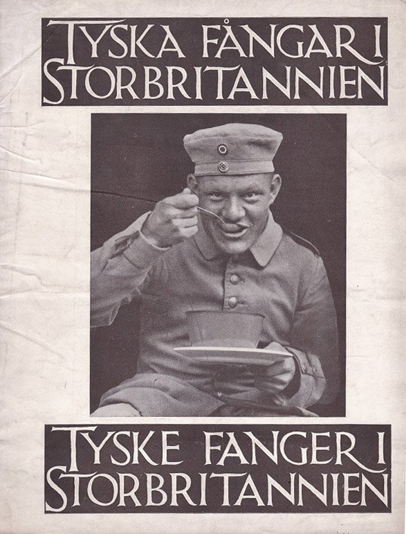 Die Broschur enthält zahlreiche fotografische Abbildungen von deutschen Kriegsgefangenen in England, die allesamt ein Bild von guter Behandlung der Gefangenen während ihrer Gefangenschaft zeichnen. Das Vorwort und die Bilduntertitel sind in schwedischer und dänischer Sprache. Die Publikation richtete sich vermutlich auf die Beeinflussung der dortigen Bevölkerungen während des Ersten Weltkriegs. Seltene historische Publikation!