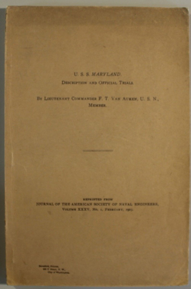 U.S.S. Maryland. Description and Official Trials. Reprint from Journal of the American Society of Naval Engineers. Vol. XXXV, No. 1 1923