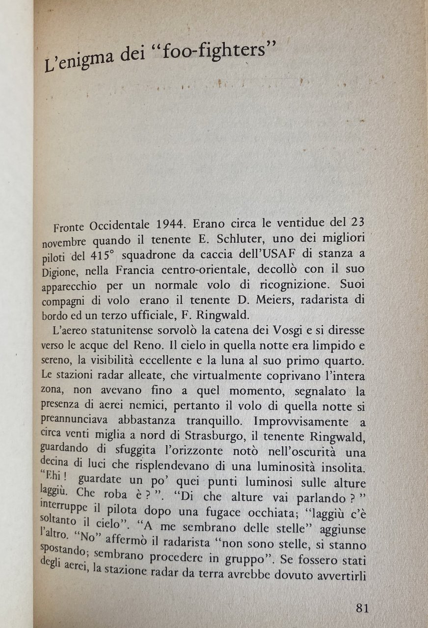 Soggetti: Extraterrestri Alieni Terra Presenze Scoperte Avvistamenti Ufologia Critica letteraria Riferimento Antologie Universo Cosmologia Letteratura fantascientifica Fantastica Fantasy Fantascienza Romanzi Racconti Narrativa Collezionismo Libri illustrati rari fuori catalogo Spazio Approfondimento UFO Dischi volanti Cosmo Vita extraterrestre Oggetti Non Identificati UAP Fenomeni Aerei Anomali Militare Kenneth Arnold Contatti Americani Angeli Apparizioni Ashtar Astronauti Atterraggio Autorità Brasile Buco nero Centro Ufologico Civiltà Contatto Crosia Debunking Dimensioni Distanza Effetti elettromagnetici Entità Esperienze eventi Fisica Flying Fotografie Fratellanza Cosmica George Adamski Hynek Incontri ravvicinati Intelligenze Joseph Allen Klaatu Mormon Livello Luce Luminoso Manifestazioni Meier Messaggi Mistero Mondo Notiziario Occupanti Parapsicologia Pianeta Piloti Psicologia Puharich Terzo Ricerca Segnalazioni Sheran Siragusa Spaziale Statunitense Studio Tecnologia Telepatia Testimoni Ultimatum alla Terra Uri Geller Velocità Venusiani Pentagono Blue Book Casistica Caso Roswell Classificazione CNES Controllo Aeronautica USAF Divulgazione scientifica Documenti dossier Gabinetto RS/33 governo Luna Messico Militari Misteriosi NASA Presenza Project Questione Radar Ingegneria Roberto Pinotti Russia Sovietico Umanoidi URSS Velivoli Cerchi nel grano Chilometri Cielo CISU Cospirazionismo Edoardo Russo Fulmini globulari Gian Paolo Grassino Fiorino Hessdalen Indagini Inspiegabili Marco Bianchini Matteo Leone Osservazioni Toselli Sant'Agata di Militello Sturrock Testimonianze Tracce UPIAR Anatomia Archetipi Jung Gerald Oster Max Planck Cosmovoci Navicelle spaziali Monguzzi Fake Falsi Ai Force Comunicazioni Carl Sagan Thornton Page Prove Fatima Anni Sessanta Settanta Miracoli Suggestione Keel Aimé Michel Juan Ballester Olmos Gary Wilcox Galassie Galattica Schluter Menzel Barney Hill Jacques B. Bley Celti Saggistica Extraterrestrials Aliens Earth Presences Discoveries Sightings Ufology Literary criticism Reference Anthologies Universe Cosmology Science fiction literature Fantastic Novels Short stories Collectibles Rare illustrated books out of print In-depth UFOs Saucers Cosmos Extraterrestrial life Unidentified objects Anomalous aerial phenomena Military American contacts Angels Apparitions Astronauts Landing Authority Brazil Black hole Center Civilization Contact Dimensions Distance Electromagnetic effects Entities Experiences events Physics Photographs Cosmic Brotherhood Close encounters Intelligences Light level Luminous Manifestations Messages Mystery World Newsletter Occupants Parapsychology Planet Pilots Psychology Third Research Reports US Space Study Technology Telepathy Witnesses Speed Venusians Pentagon Case studies Classification Control Aeronautics Scientific disclosure Documents Cabinet government Moon Mexico Mysterious Presence Question Engineering Soviet Humanoids Aircraft Crop Circles Kilometers Sky Conspiracy Theory Ball Lightning Investigations Unexplained Observations Testimonies Traces Anatomy Archetypes Spaceships Communications Evidence Sixties Seventies Miracles Suggestion Galaxies Galactic Celts Non-Fiction