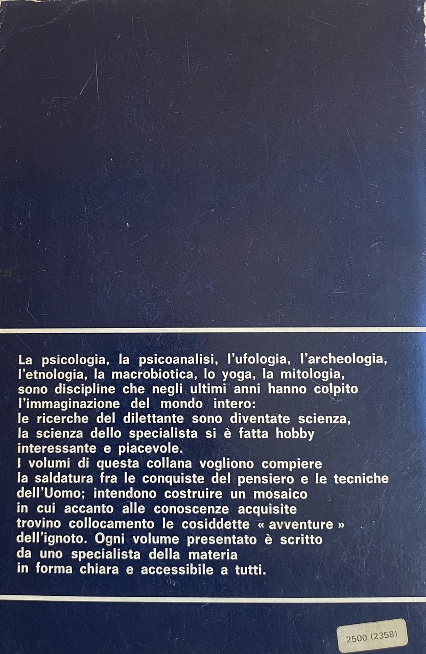 La psicologia, la psicoanalisi, l'ufologia, l'archeologia, l'etnologia, la macrobiotica, lo yoga, la mitologia, sono discipline che negli ultimi anni hanno colpito l'immaginazione del mondo intero: le ricerche del dilettante sono diventate scienza, la scienza dello specialista si è fatta hobby interessante e piacevole. I volumi di questa collana vogliono compiere la saldatura fra le conquiste del pensiero e le tecniche dell'Uomo; intendono costruire un mosaico in cui accanto alle conoscenze acquisite trovino collocamento le cosiddette avventure dell'ignoto. Ogni volume presentato è scritto da uno specialista della materia in forma chiara e accessibile a tutti.