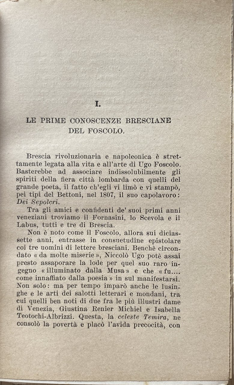 UGO FOSCOLO A BRESCIA. L'AMORE PER MARZIA MARTINENGO, LA STAMPA DEI SEPOLCRI, GLI AMICI BRESCIANI, BATTAGLIE LETTERARIE