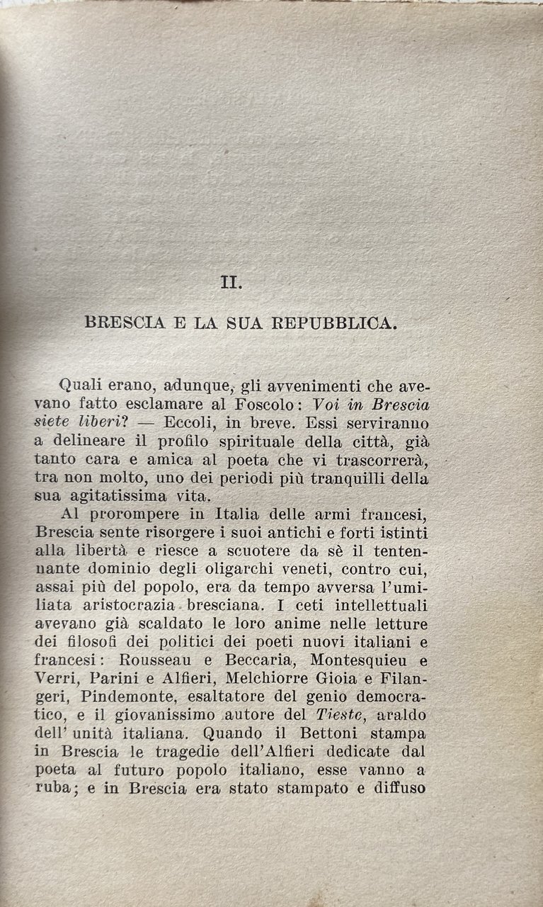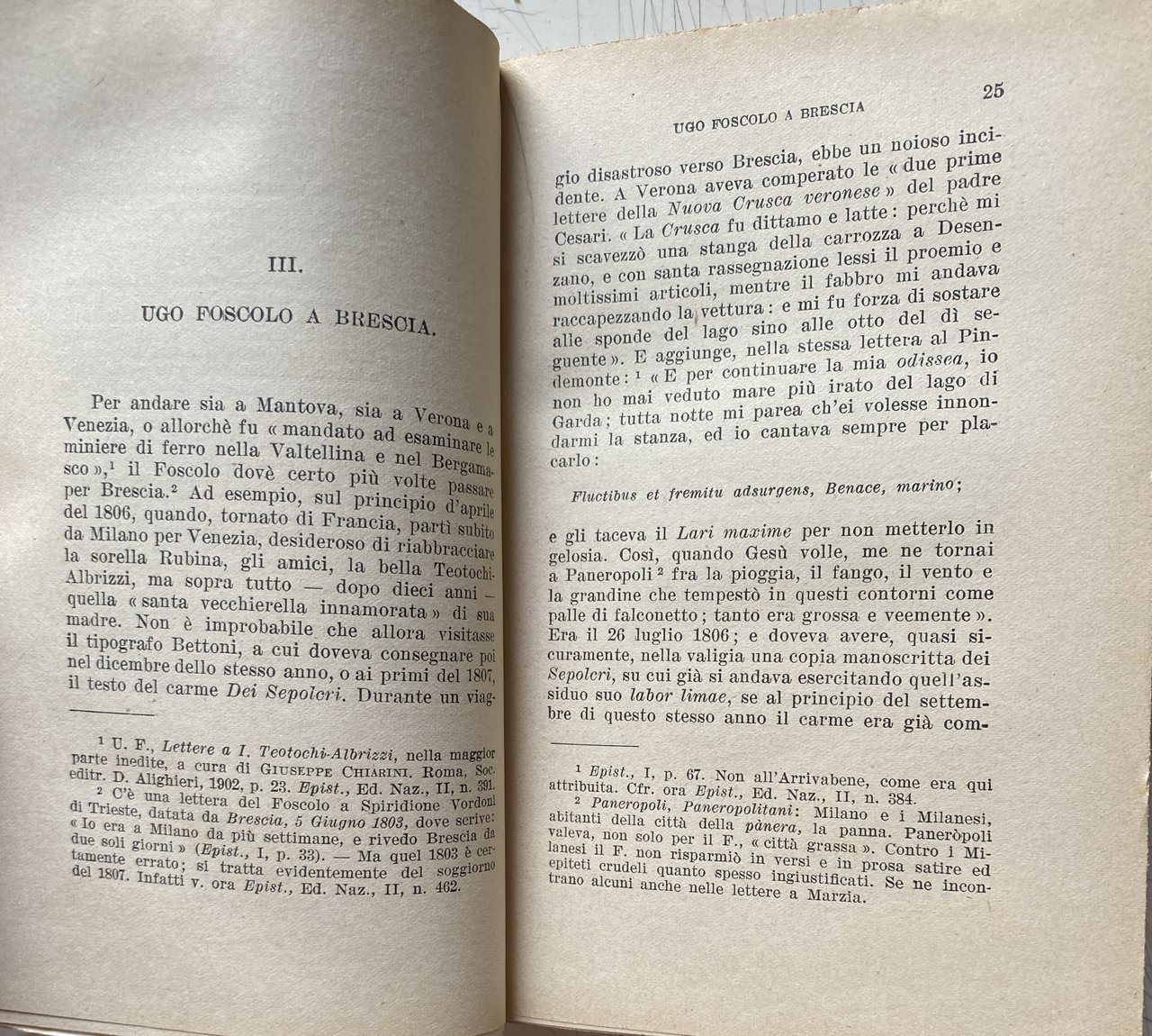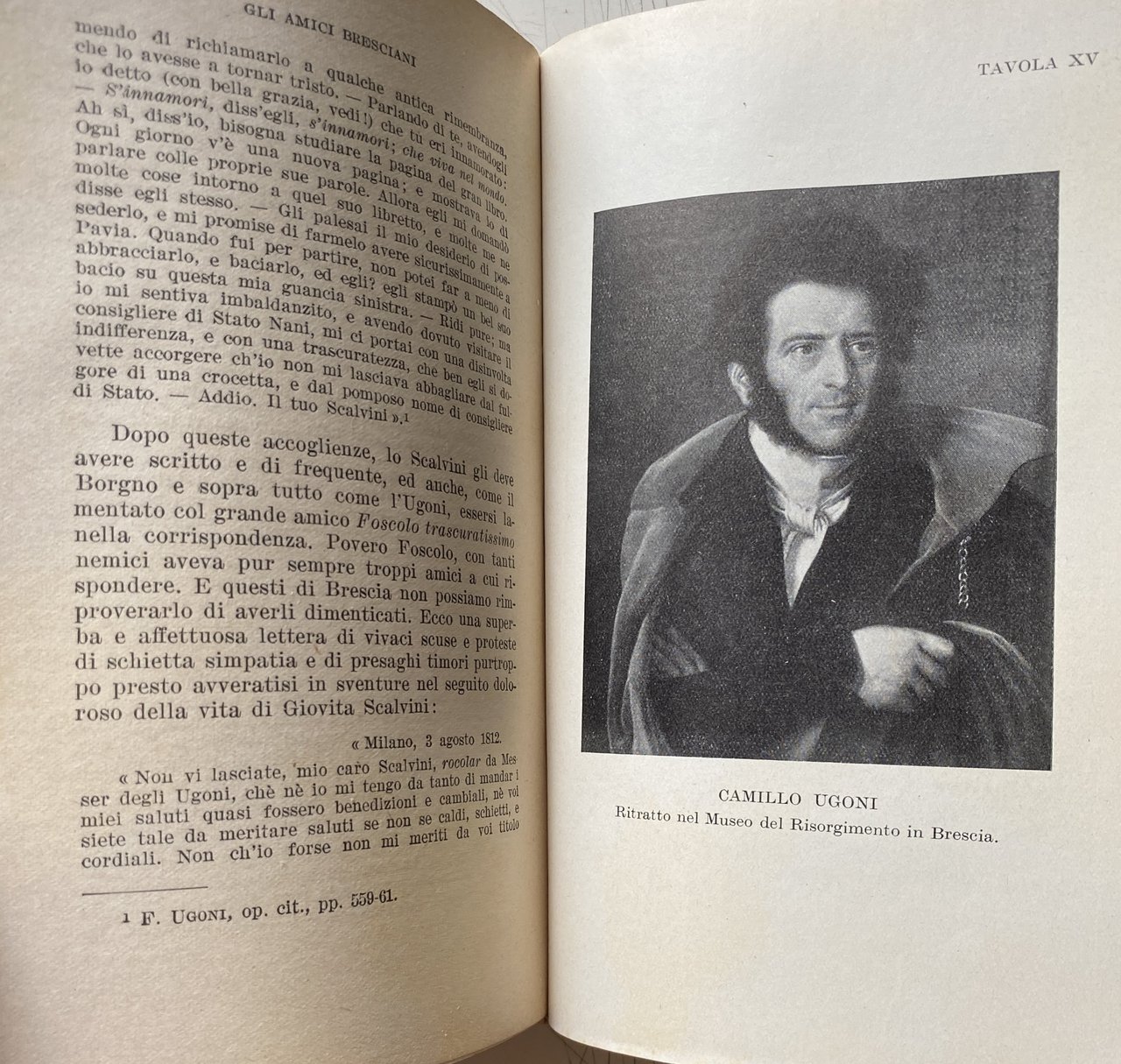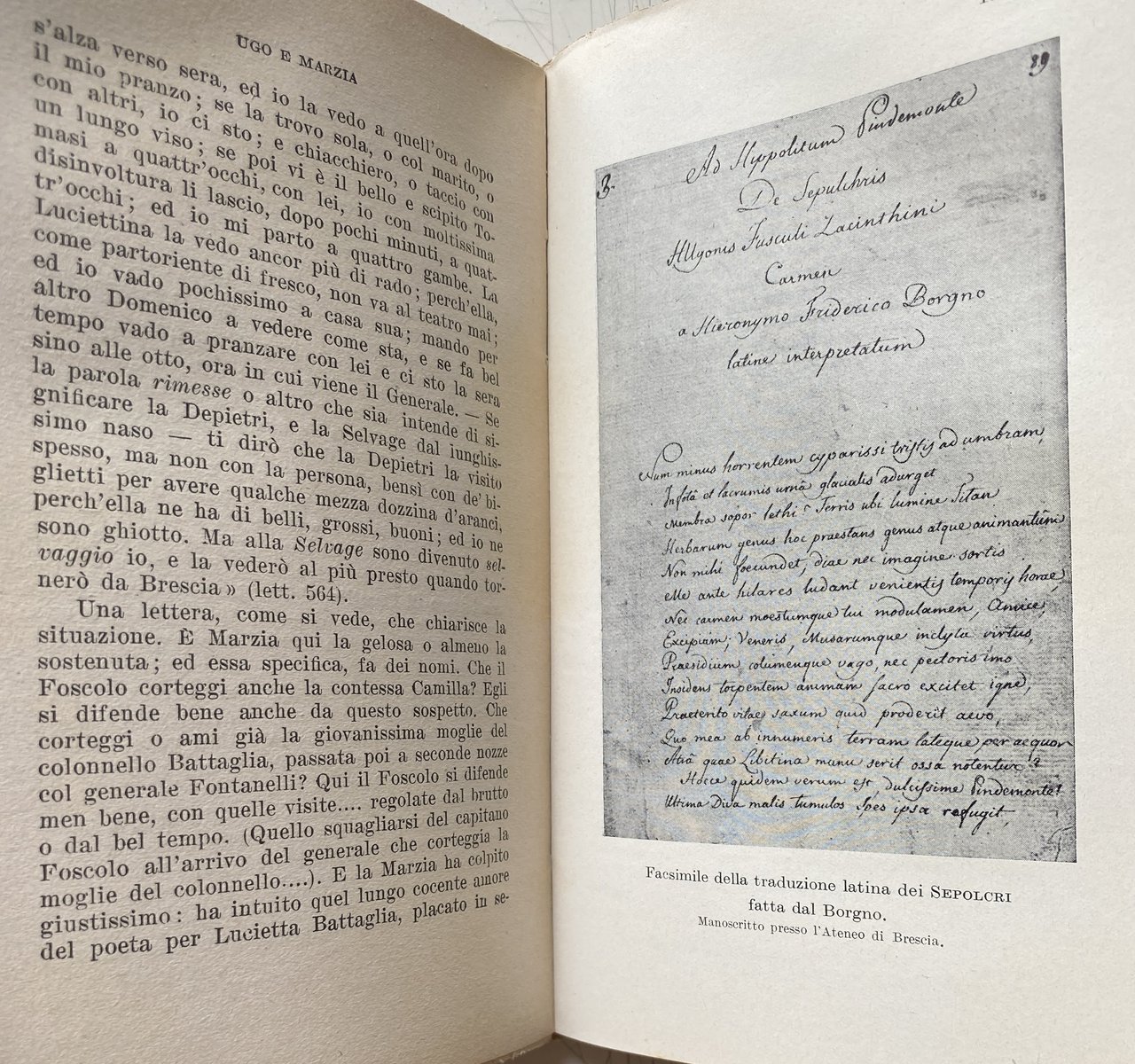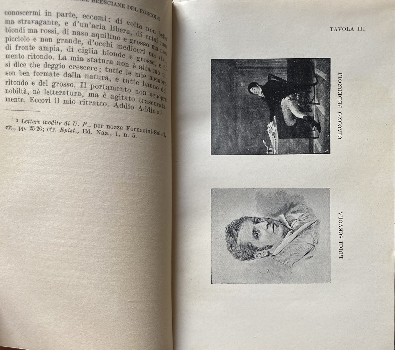Soggetti: Letteratura italiana, Biografie, Memorie, Epistolario, Lettere inedite, Corrispondenza, Relazioni amorose, Scritti, Dediche, Scambi epistolari, Ugo Foscolo, Romanticismo, Poesia, Poesie, Storie d'amore, Intellettuali, Contessa Marzia Martinengo Cesaresco Provaglio, Amicizie, Intimità, Sepolcri, Critica letteraria, Epistofoscolario, Brescia, Nobildonne, Arnaldo Beltrami, Raccolte, Antologie, Collezionismo, Rarità librarie, Libri rari Vintage illustrati fuori catalogo, Antiquariato, Opere, Edizione Nazionale, Plinio Carli, Settecento, Ottocento, Venezia, Austria, Francia, Rivoluzione francese, Età Napoleonica, Trattato, Cessione, Vendita, Campoformio, Tradimenti, Tradimento, Impero austro-ungarico, Francia, Napoleone Bonaparte, Cisalpina, Carmi, Vita culturale, Isabella Teotochi Albrizzi, Amori, Gioventù, Salotti, Borghesia, Nobiltà bresciana, Eloquenza, Retorica, Esilio, Erudizione, Filologia, Traduzioni, Classicismo, Omero, Chioma di Berenice, Iliade, Marzaccan, Mario Fubini, Didimo Chierico, Odi, Frammenti, Poemi, Patriottismo, Nazionalismo, Silvio Pellico, Patrioti, Nicolò Bettoni, Tipografia, Stampa, Editoria, Stampatori, Bodoni, P. Barbera, Fornasini, Pasini, Almanacco del Mella, Vita bresciana, Anni giovanili, F. Barbieri, Giambattista Passano, Girolamo Federico Borgno, Camillo Ugoni, Francesco Filos, Pier Damiano Armandi, Latino, Greco, Ippolito Pindemonte, Vincenzo Monti, Cesare Arici, Gaetano Fornasini, Grecia, Zante, Giustina Renier Michel, Repubblica veneta, Luigi Scevola, Carlo Roncalli Parolino, Battaglie, Libertà, Bianca della Somaglia Uggeri, Fausto Lechi, Ugo Baroncelli, Paolo Tosio, Luigi Mabil, Ferdinando Arrivabene, Ugo Da Como, Jacopo Ortis, Annetta Arese Fagnani, Margherita Negroboni, Eleonora Monti, Lodovica Fè d'Ostiani, Conversazioni, Società salottiera, Politica, Indipendenza, Dame, Donne, Muse, Poetica, Passione, Saggistica, Riferimento, Consultazione, Bibliografia, Carteggio amoroso, Versi, Baretti, Chiarini, Arnaldo Beltrami, Orlandini, Mayer, Perosino, Bianchini, Tipaldo, Idee rivoluzionarie, Moti, Massoneria, Carlo Roncalli, Epigrammi, Giacomo Perderzoli, Fotografie d'epoca, Jean-Jacques Rousseau, Cesare Beccaria, Montesquieu, Verri, Giuseppe Parini, Vittorio Alfieri, Gaetano Filangieri, Melchiorre Gioia, Napoli, Gioacchino Murat, Martiri, Repubblica Partenopea, Congiure, Rivolte, Ribellione, Giacobini, Ritratti, Autografi, Letterati, Antonio Buccelleni, Cenacolo, Spielberg, Confalonieri, Santa Croce, Mazzini, Gioberti, Cattaneo, Alessandro Manzoni, Amalia Augusta, Logge massoniche, Società segrete, Giovine Italia, Istria, Dalmazia, Trieste, Frontespizio, Fac-simile, Giovita Scalvini, Niccolò Tommaseo, Italian literature, Biographies, Memoirs, Epistolary, Unpublished letters, Correspondence, Love affairs, Writings, Dedications, Exchanges of letters, Romanticism, Poetry, Poems, Love stories, Intellectuals, Countess, Friendships, Intimacy, Sepulchres, Literary criticism, Epistofoscolario, Noblewomen, Collections, Anthologies, Collectables, Book rarities, Rare books illustrated out of catalogue, Antiques, Works, National edition, Eighteenth century, Nineteenth century, Venice, France, French Revolution, Napoleonic age, Treaty, Transfer, Sale, Betrayals, Betrayal, Austro-Hungarian Empire, France, Napoleon, Poem, Cultural Life, Love, Youth, Salons, Bourgeoisie, Brescian Nobility, Eloquence, Rhetoric, Exile, Erudition, Philology, Translations, Classicism, Homer, Berenice's Hair, Iliad, Odes, Fragments, Poems, Patriotism, Nationalism, Patriots, Typography, Press, Publishing, Printers, Almanac, Life, Youth, Latin, Greek, Greece, Zakynthos, Venetian Republic, Battles, Freedom, Conversations, Lounge society, Politics, Independence, Ladies, Women, Muses, Poetics, Passion, Non-fiction, Reference, Consultation, Bibliography, Loving Correspondence, Verses, Revolutionary Ideas, Riots, Freemasonry, Epigrams, Vintage Photographs, Martyrs, Parthenopean Republic, Conspiracies, Revolts, Rebellion, Jacobins, Portraits, Autographs, Literates, Last Supper, Masonic Lodges, Secret societies, Young Italy, Dalmatia, Frontispiece