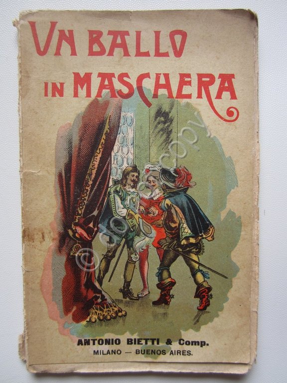 Giulio Milanetti, Un ballo in maschera Antonio Bietti & Comp., Milano, 1906; 15,4x10 cm, pp. 62; br. ed. ill. a colori. Condizioni di conservazione Libro in buono stato di conservazione, con normali segni d'usura e del tempo: brossura leggermente brunita, con alcune minime tracce di sporco e lievi difetti ai margini. Dorso con minimi strappetti; cuffia sup. con mancanza; cuffia inf. con piccolo strappetto. Interni in buono stato: margini con barbe; alcune sgualciture agli angoli. OPEB.2362 blu
