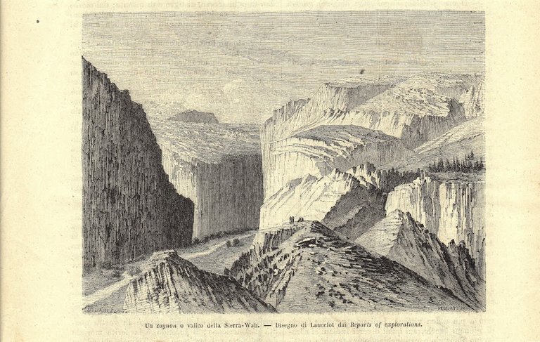 Un cagnon o valico della Sierra-Wah. Stampa 1863.
