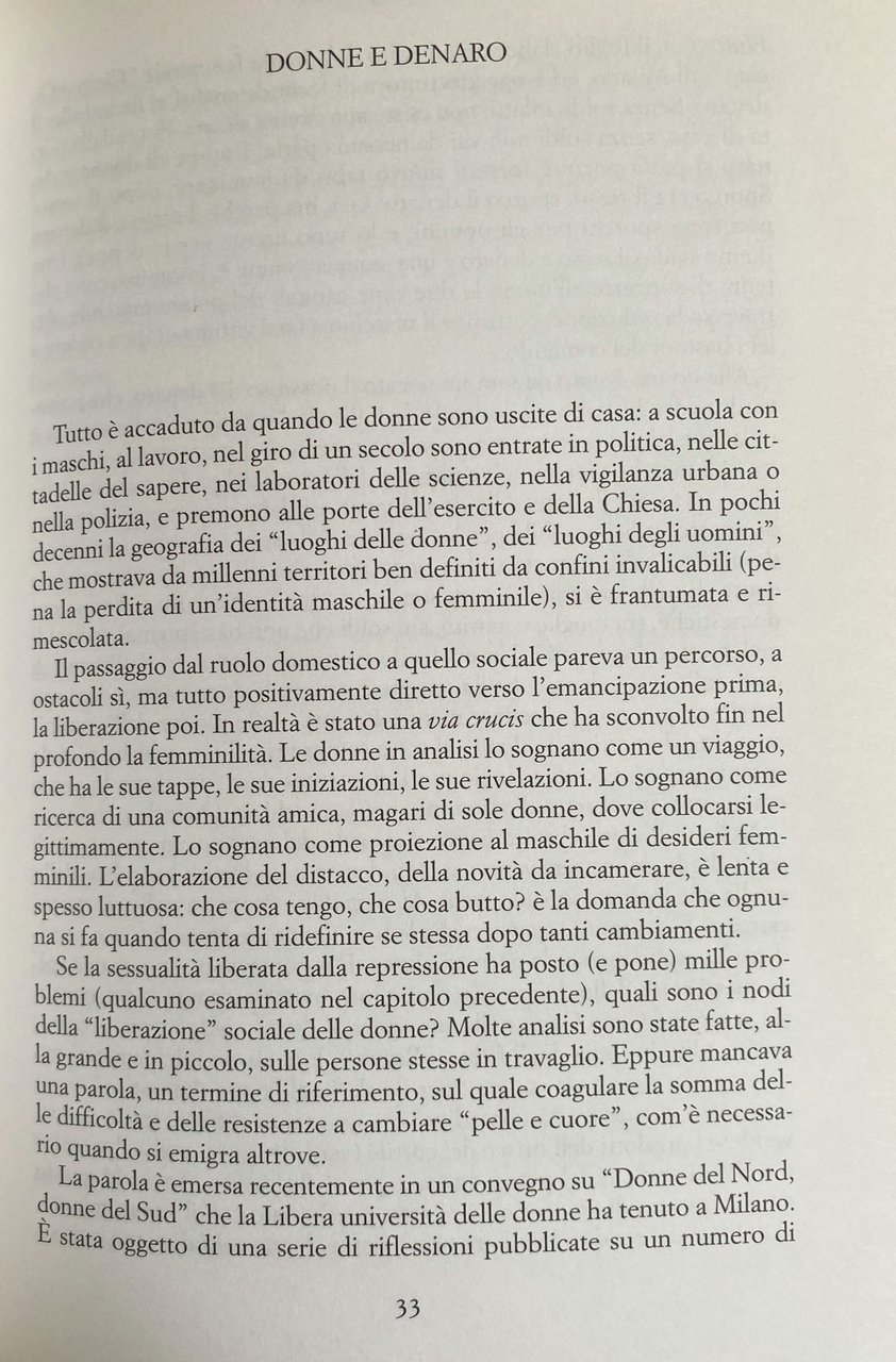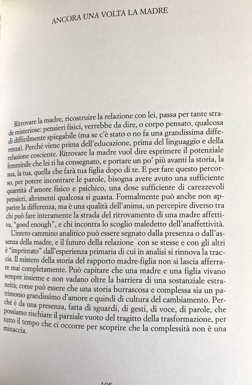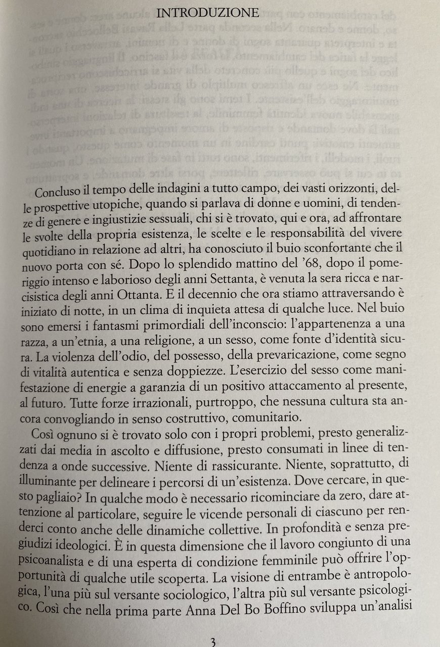 Soggetti: Studi di genere Donne Condizione femminile Psicologia Società Scienze sociali Sociologia Studi culturali Donna Parità Diritti Corpo Erotismo Femminilità Patriarcato André Green Attis Breuer Buzzatti Capacità Charcot Cibele Transfert Amore Isteria Desiderio Didier Anzieu distruttiva Dolore Fantasie Emancipazione femminile Feticcio Figlia Materna Freud Green Helene Deutsch Identità Luce Irigaray Melanie Klein Montrelay Psiche Psicoanalisi Sándor Ferenczi Sentimenti Sessualità Terapia Winnicott Analisi Attilio Bertolucci Cambiamento Casa Cesare Musatti Cognizione del dolore Conflitto Cristina Campo Cucina David Maria Turoldo Inconscio Emozioni Fellini Gianfranco Ravasi Gioco Hillman Incontro Interiore Età Lamarque Lavoro Lutto Madre Maternità Morte Perdita Rainer Maria Rilke Relazioni Riconoscimento Sylvia Plath Trasformazione Vittorio Sereni Identità Violenza Differenze Maschile Famiglia Sessantotto Contestazione Rivolta Cibo Anoressia Stigma sociale Possesso Libertà Comunicazione Linguaggio Citazioni Pasolini Poesia per Marilyn Louis Andreas Salomé Letteratura Poesie Emily Dickinson Mario Luzi Melville Lamarque Rabbia Caproni Cavafis Alda Merini Incomunicabilità Saggistica Libri rari fuori catalogo Tempo libero Politica Femminismo Guadagno Salario Denaro Indipendenza economica Educazione Seduzione Accudimento Focolare Sesso debole Geisha Simone de Beauvoir Rapporti Jung Dominio Partner Storie Donatella Bisutti Gina Lagorio Gender studies Women Female condition Psychology Society Social sciences Sociology Cultural studies Woman Equality Rights Body Eroticism Femininity Patriarchy Capacity Cybele Love Hysteria Desire Destructive Pain Fantasies Female emancipation Fetish Maternal daughter Identity Psyche Psychoanalysis Feelings Sexuality Therapy Analysis Change Home Cognition of pain Conflict Kitchen Unconscious Emotions Game Inner Encounter Age Work Mourning Mother Maternity Death Loss Relationships Recognition Transformation Identity Violence Differences Male Family Sixty-eight Contestation Revolt Food Anorexia Possession Freedom Communication Language Quotations Literature Poems Anger Incommunicability Essays Rare books out of print Free time Politics Feminism Earnings Salary Money Economic independence Education Seduction Care Home Weaker sex Relationships Domination