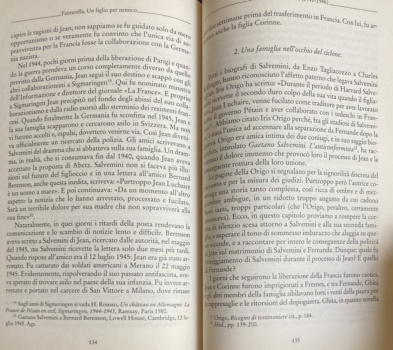 Il 28 dicembre 1908 un violento terremoto rase al suolo Messina. Gaetano Salvemini, che allora insegnava lì, sopravvisse a quella sciagura, ma non gli furono risparmiati né la moglie, né la sorella, né i cinque figli che per settimane cercò tra le macerie. In molti accorsero per aiutarlo in quella dolorosa ricerca. Tra questi Fernande Dauriac, che diventerà sua amica e poi compagna di vita. Nel 1916, Fernande e Gaetano si stabilirono a Firenze con Jean e Ghita, i figli che Fernande aveva avuto dal primo marito. A loro Salvemini era molto legato, specie a Jean, un ragazzo vivace e appassionato di politica, che considerava come un figlio. Questo legame sarebbe stato per Salvemini all'origine di una seconda tragedia familiare: Jean, in seguito alle vicende meticolosamente ricostruite in questo libro, finirà per aderire al nazismo, e diventerà nella Francia occupata dai tedeschi il «Führer della stampa collaborazionista» (proprio così venne definito). Questa scelta lo portò nel 1944 a riparare parare in Germania, da dove esortò allo sterminio della Resistenza francese. Arrestato nel 1945, l'anno seguente sarà processato e giustiziato come traditore. Chi c'era quel giorno, quando Salvemini seppe della fucilazione di Jean, ricorda lo sforzo che egli fece per trattenere le lacrime, e gli senti dire: «ho voglia di morire».