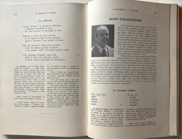 Una popolare raccolta antologica incentrata sulla poesia, compilata e curata dal Pellegrinetti ed adottata, specie in passato, sia per scopi didattici che pedagogici. Attraverso 100 anni di poesie, il lettore può rileggere gli autori più importanti e degni di nota vissuti tra la metà del XIX sec. e la metà del XX.