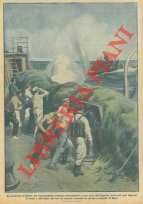Un sommergibile tedesco viene affondato da una nave che aveva i cannoni nascosti in mezzo a mucchi di fieno.